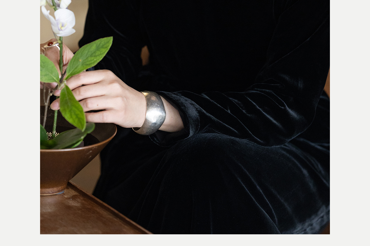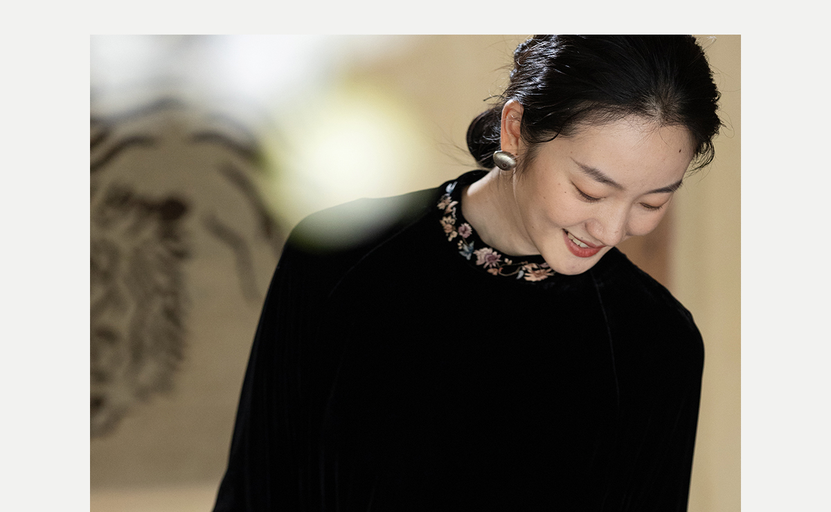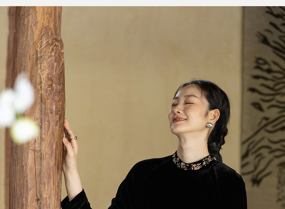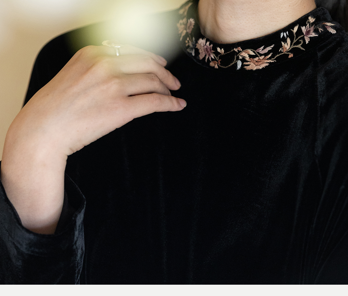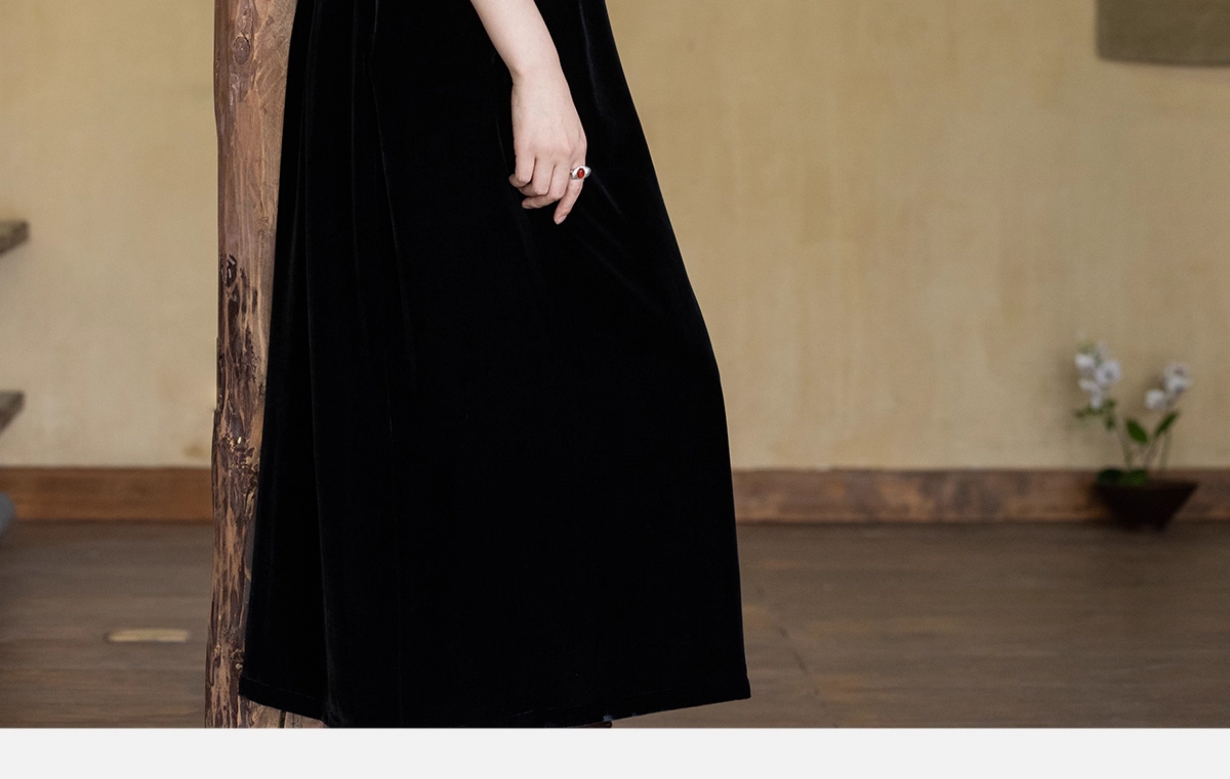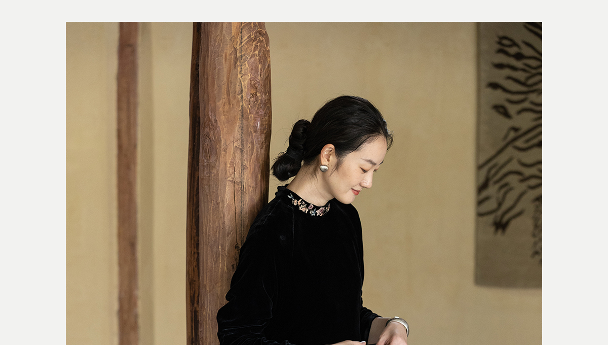 牧衣游原创 丝绒手工刺绣连衣裙黑色高级感宽松复古气质长裙 迎岚