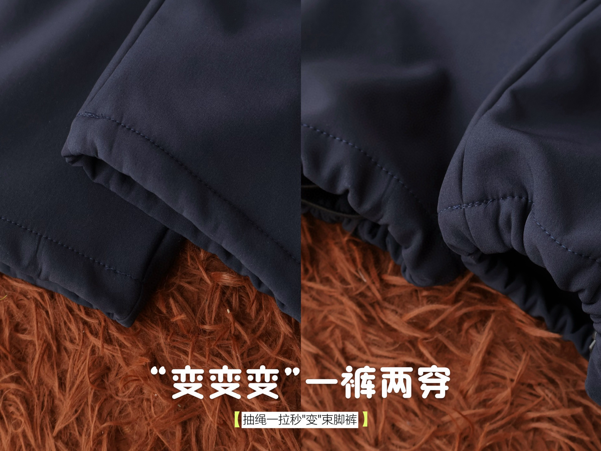 这条光靠面料就能赢的裤子,冬天穿一次就离不开!内里!是一体绒设计——不是那种容易掉毛的散绒,直接跟裤身缝在一起,贴肤软乎乎的,像裹了层小暖毯