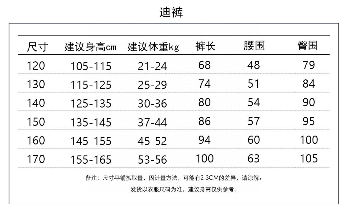 尺码表, 120-170码, 身高+1码拍