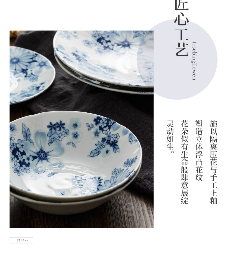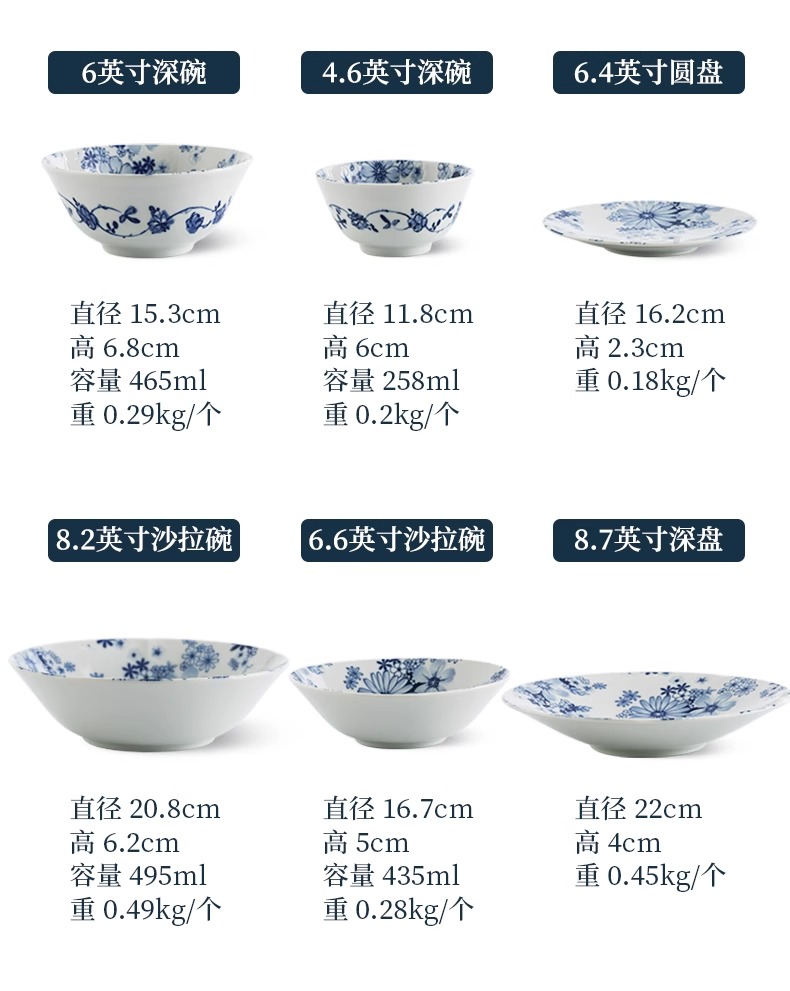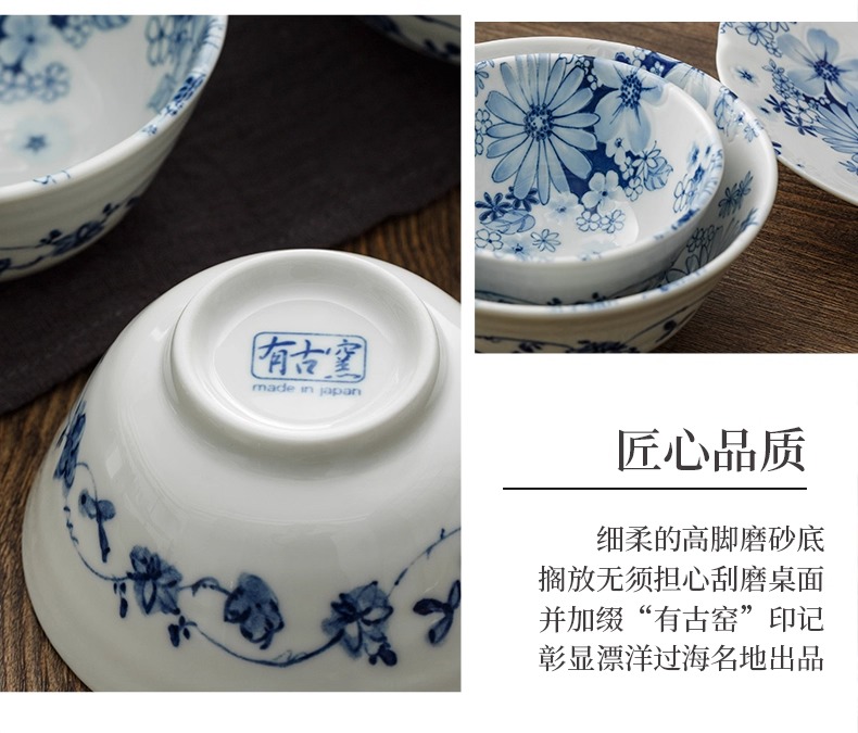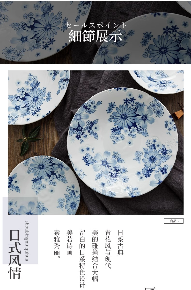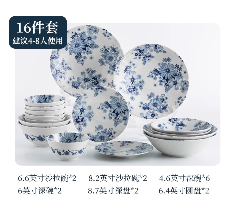 日本进口花集碗家用深盘碟子有古窑菜盘日式餐具青花瓷盘子有古窯花聚会12件套装