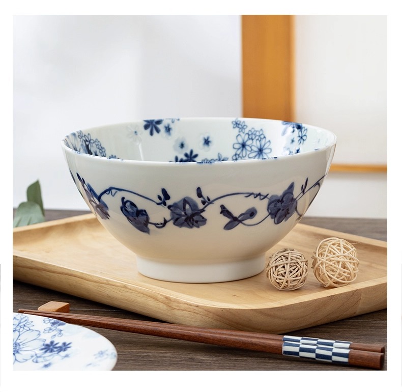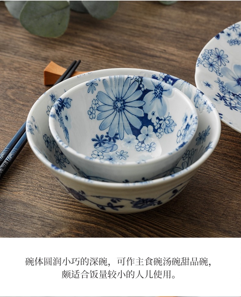 日本进口美浓烧花之语日式釉下彩清新田园风陶瓷饭碗餐盘汤碗