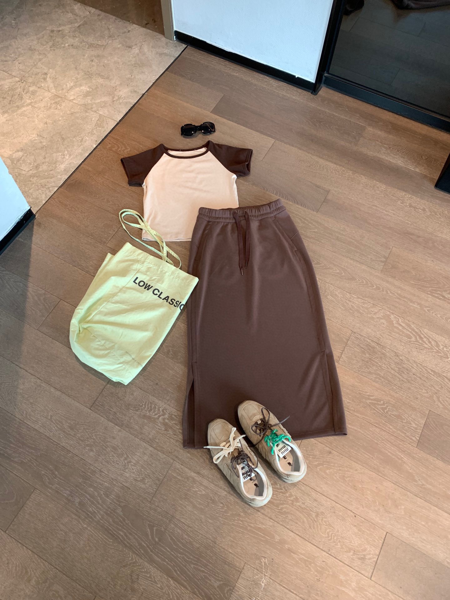 搭配米色咖色系 tee 复古感满满的