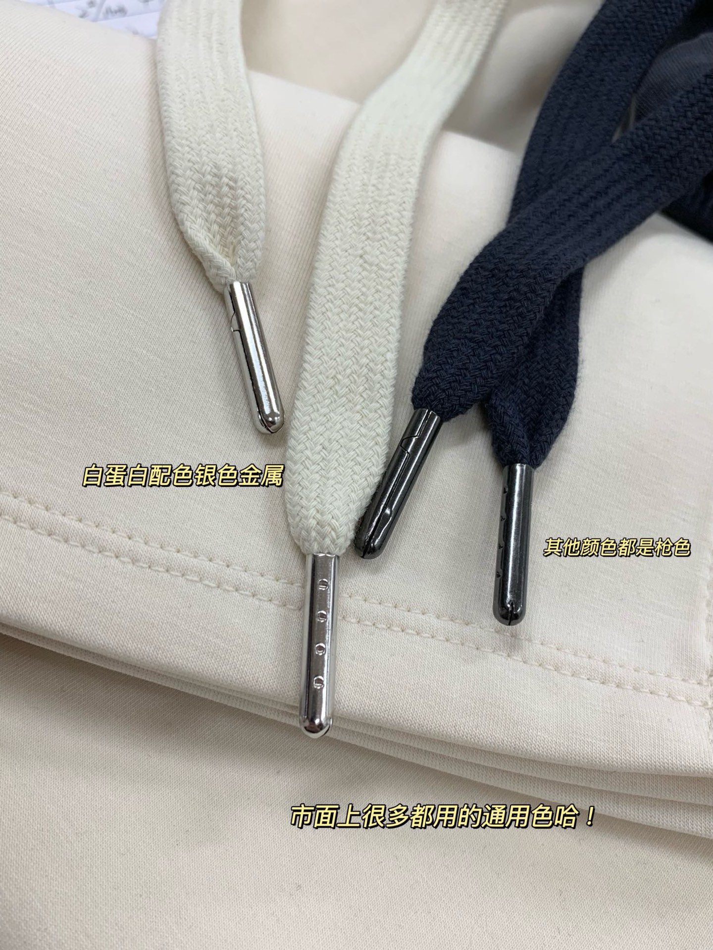绳头金属浅色是浅银色 深色是枪色五金 这也是一眼假的地方