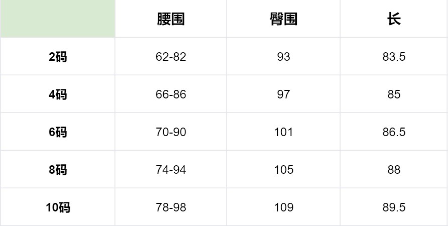 尺码表