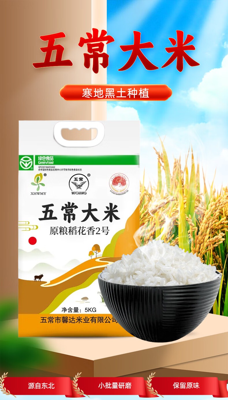 五常大米粳米10斤五常大米(原粮稻花香二号)新米5kg