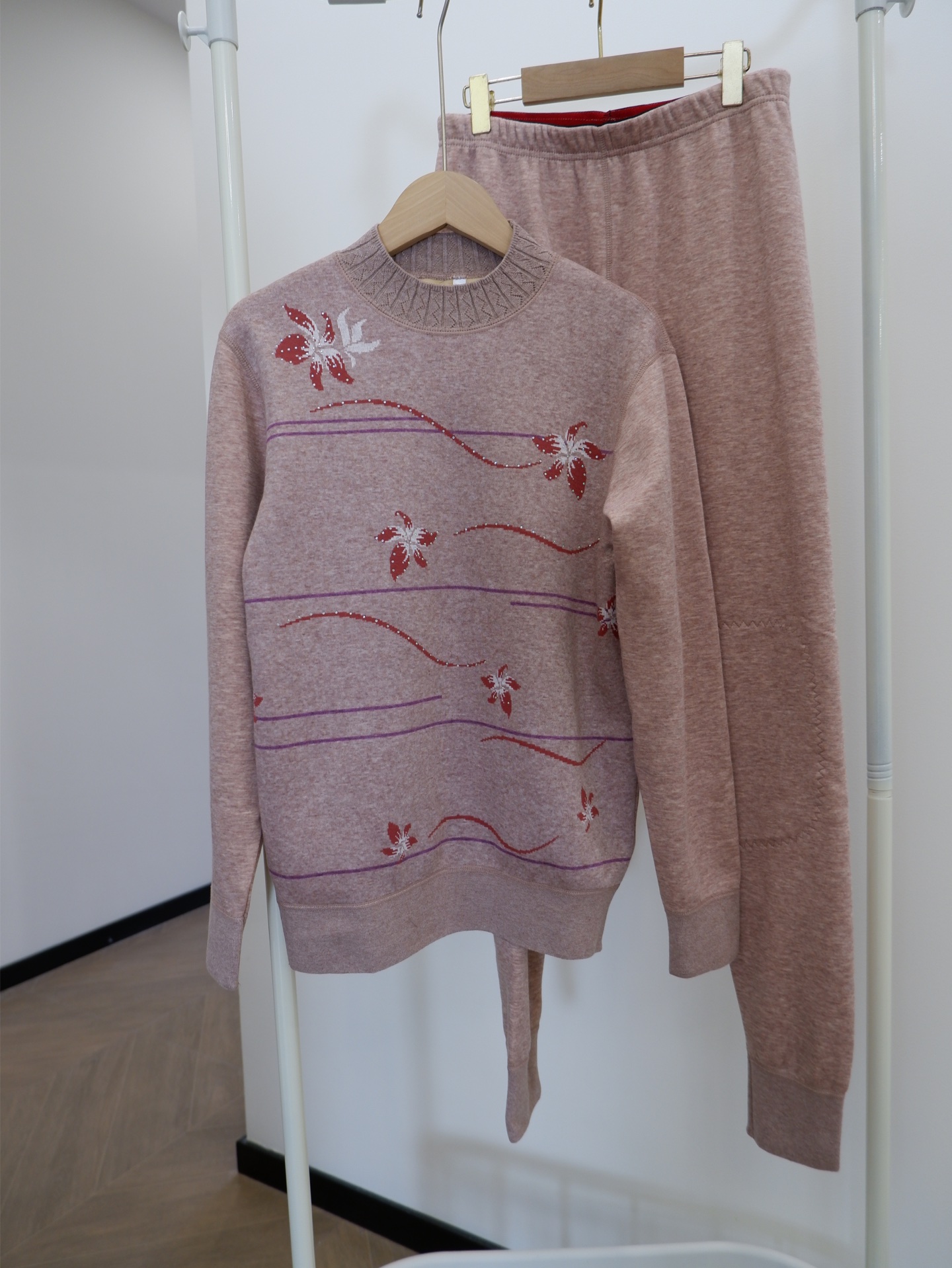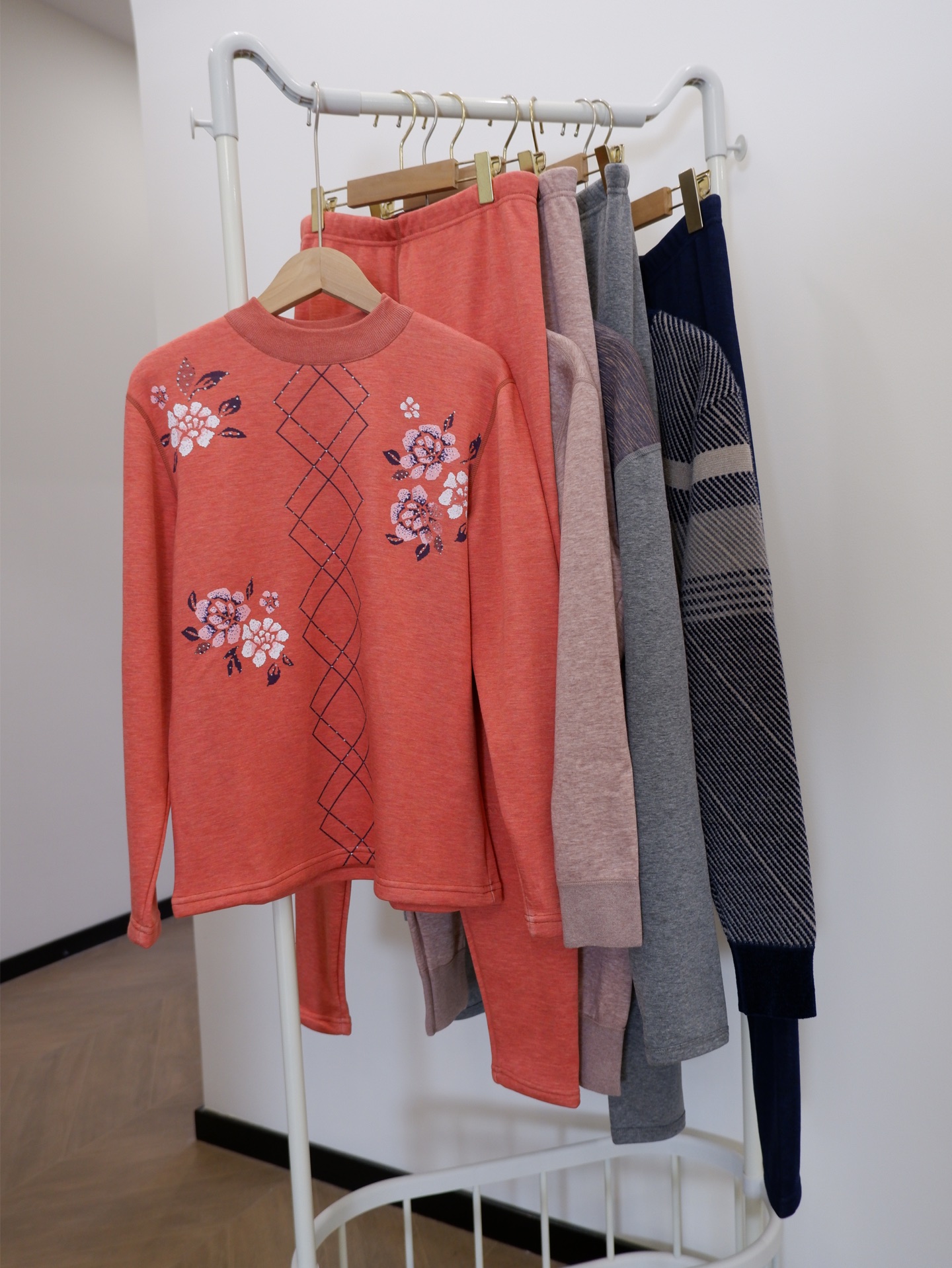 加绒加厚保暖内衣套装,上衣可外穿的一款 ,