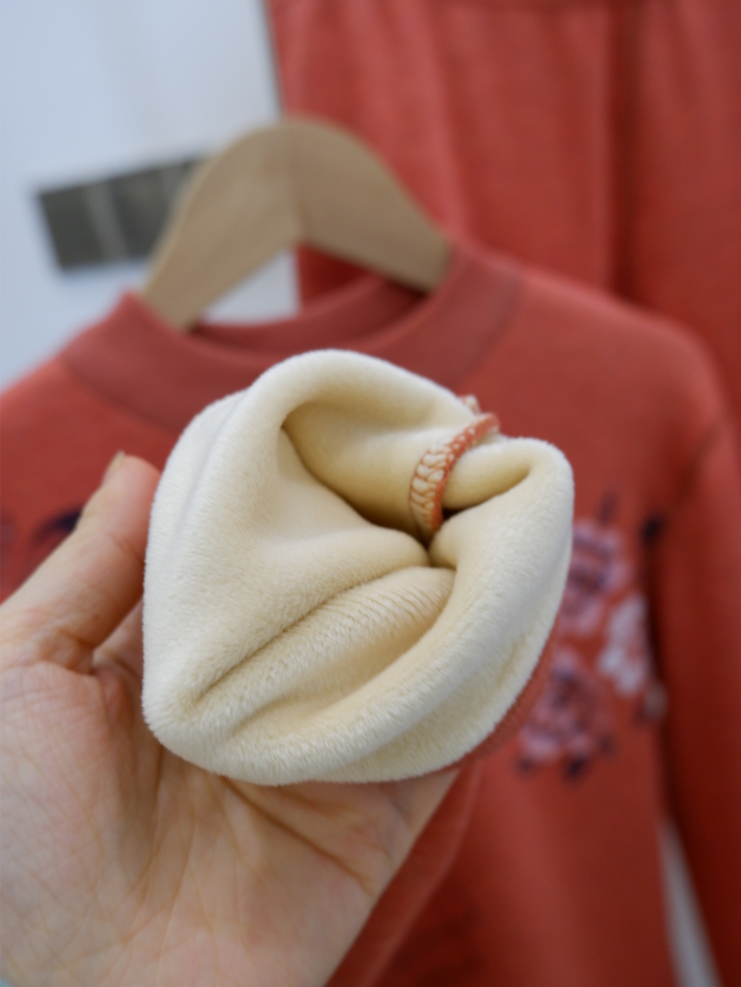 内里不倒绒材质,含氨纶,面料弹力很大