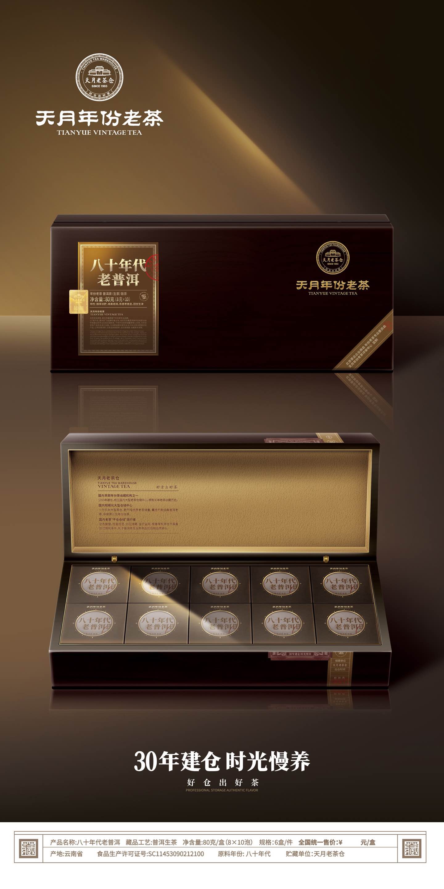 本款八十年代老普洱为天月老茶仓收藏的一款普洱老散茶,经天月老茶仓干仓储藏多年。茶品源自易武茶区,经40余年时间转化,外形呈深棕色,肥壮匀长,冲泡后汤色红艳明亮,香气馥郁,带有梅子香、樟香、陈香、蜜香,汤感醇厚顺滑,甘润饱满,叶底呈棕褐色,肥厚柔韧、有活性。老生茶随时间转化口感愈佳,价值愈高,魅力愈加凸显,具有“可饮、可藏”的双重特性,为一款名副其实的藏品级普洱老茶。