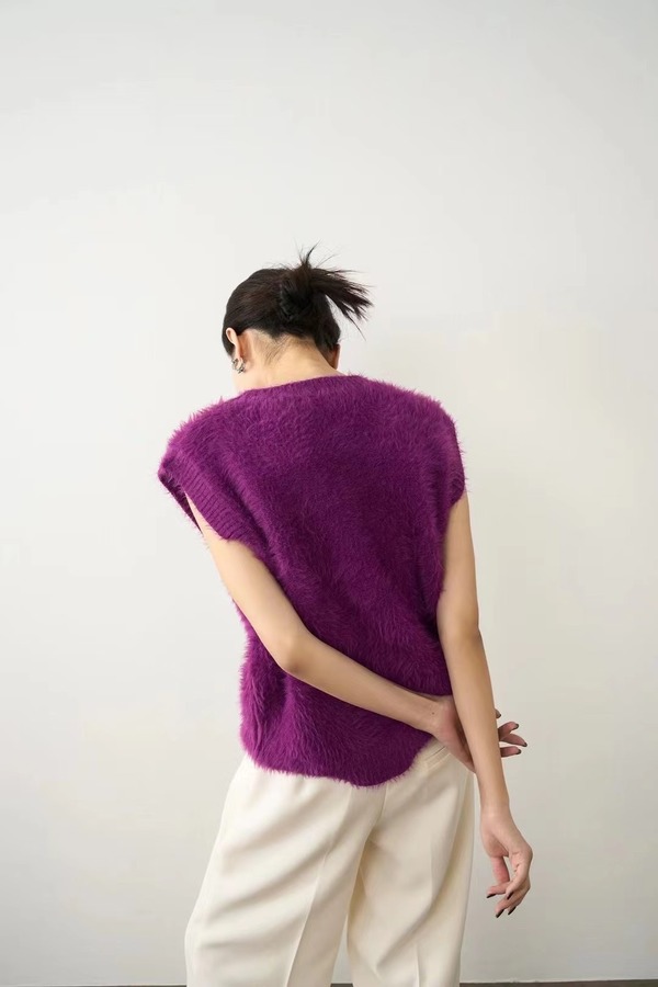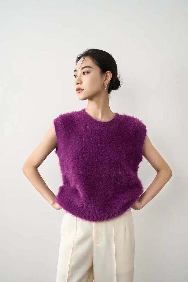 ANSUABEL 紫色时髦款针织背心上衣 19226