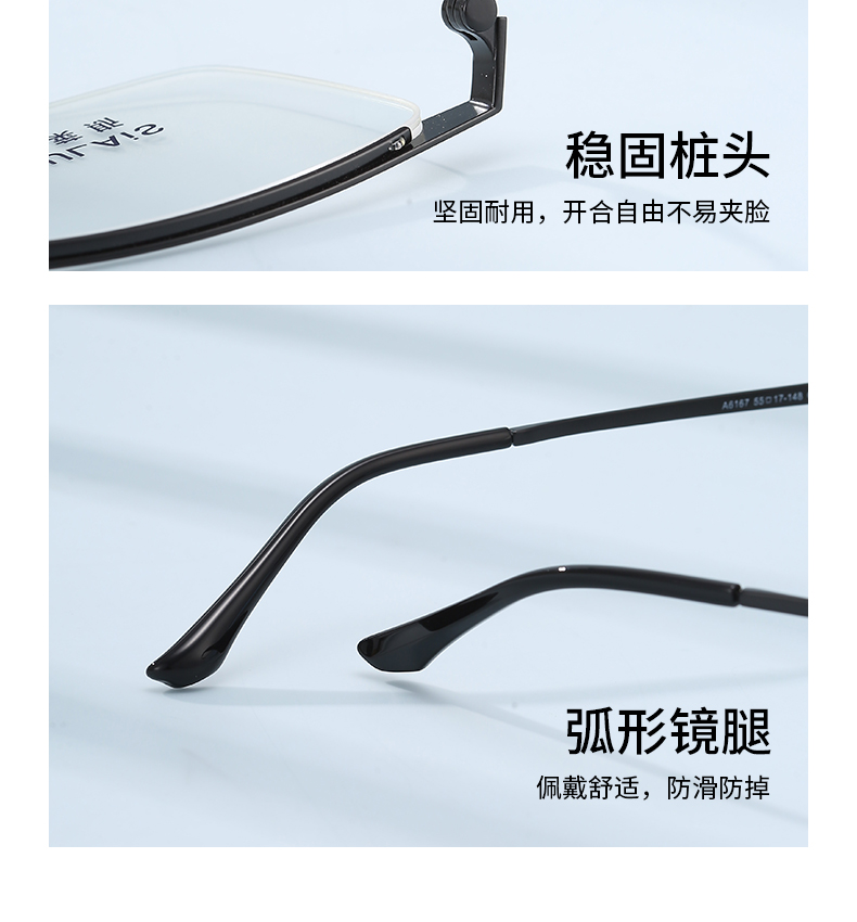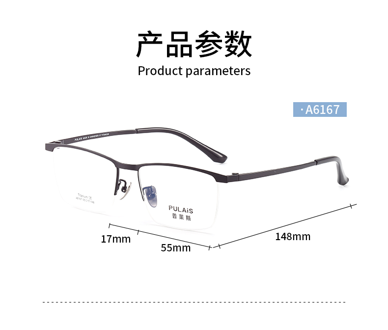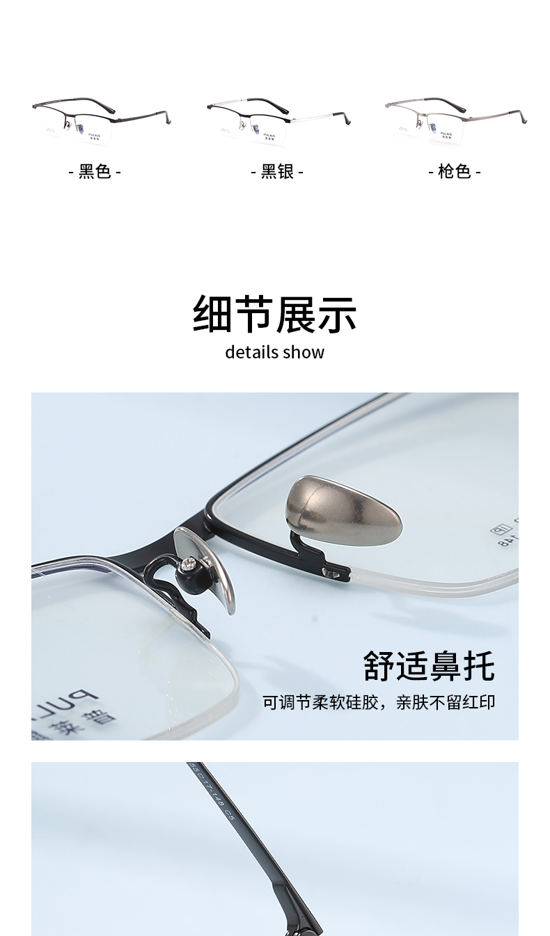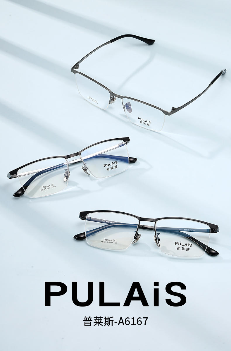 普莱斯光学镜框A6167 经典半框 半钛材质 舒适鼻托 稳固桩头 商务休闲 三色可选
