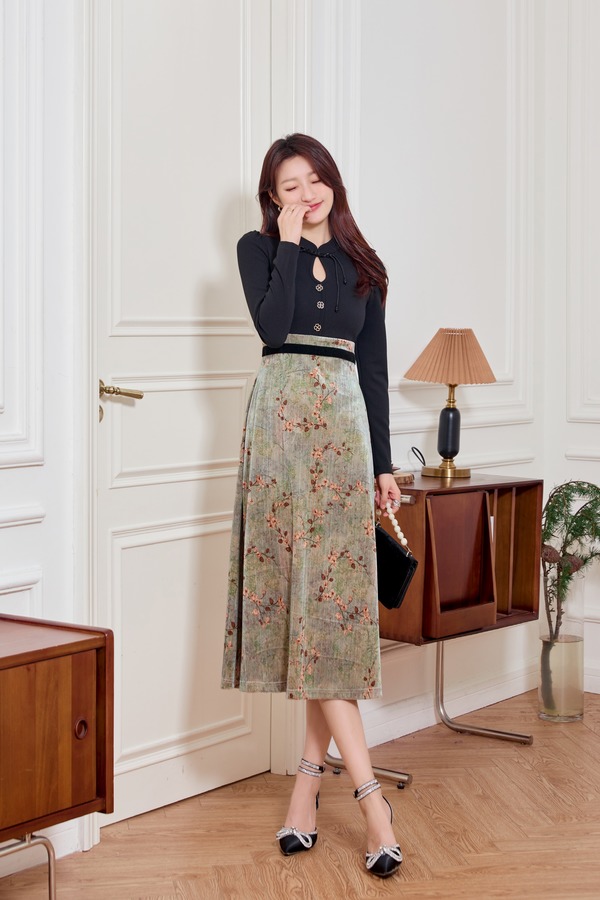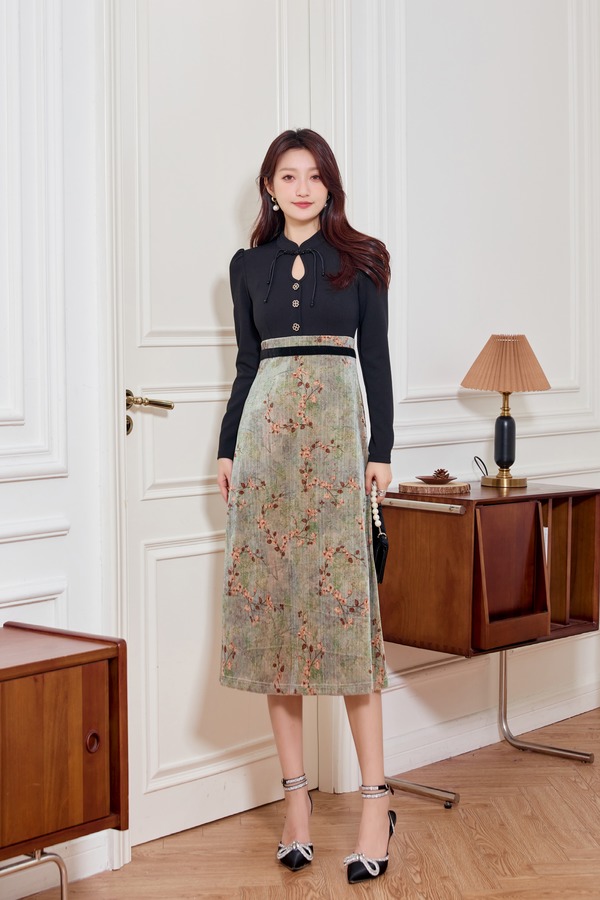 Le Malene 知性新中式水滴领拼接式连衣裙 19504