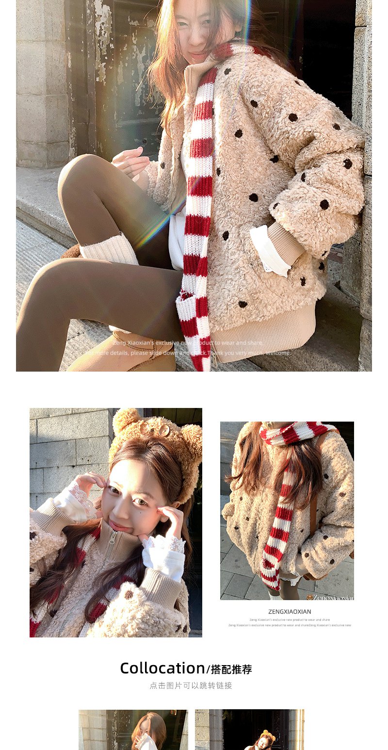 <曾小咸推荐> 现货秒杀!微信超特价!浅棕色波点羊羔毛外套 日常369.99 立减180 秒杀189.99!