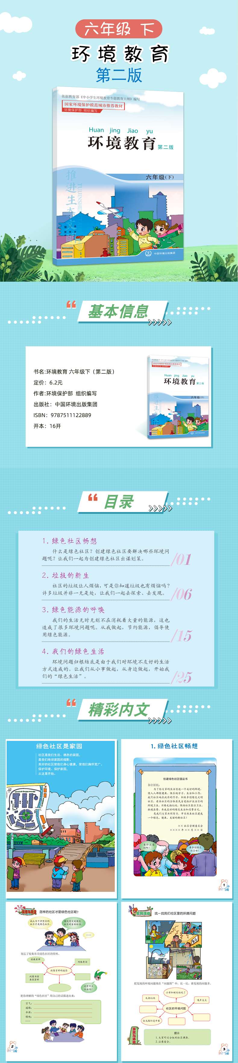 环境教育 第二版 六年级下 环保模范城市教材 环境科普读物 环境保护 中国环境出版社 9787511122889