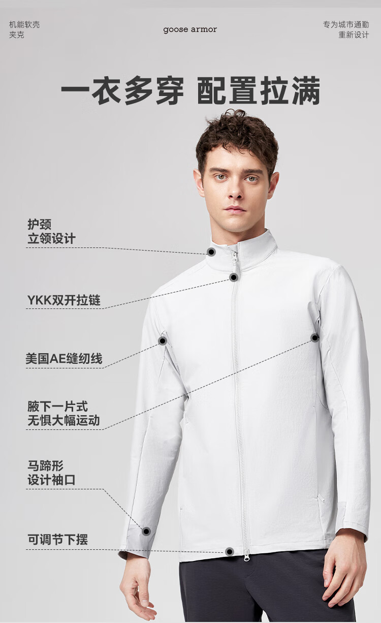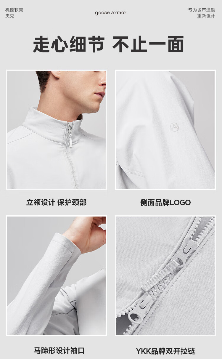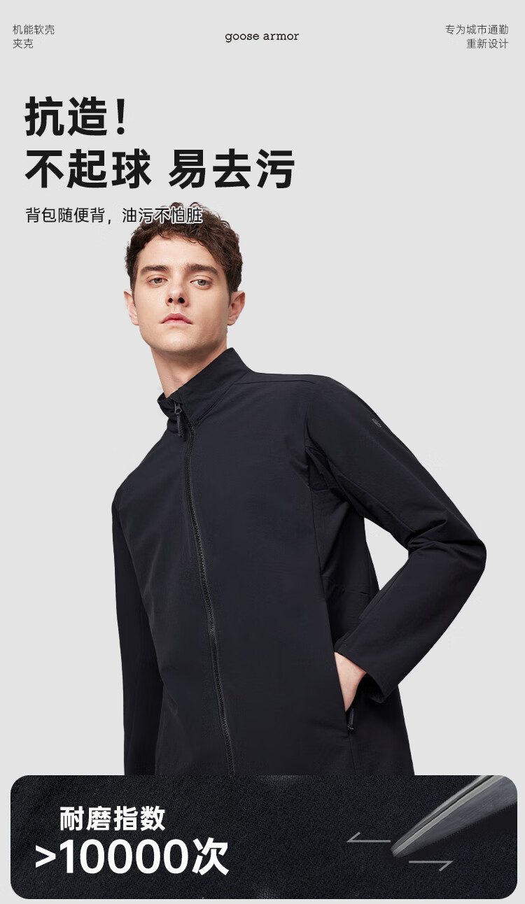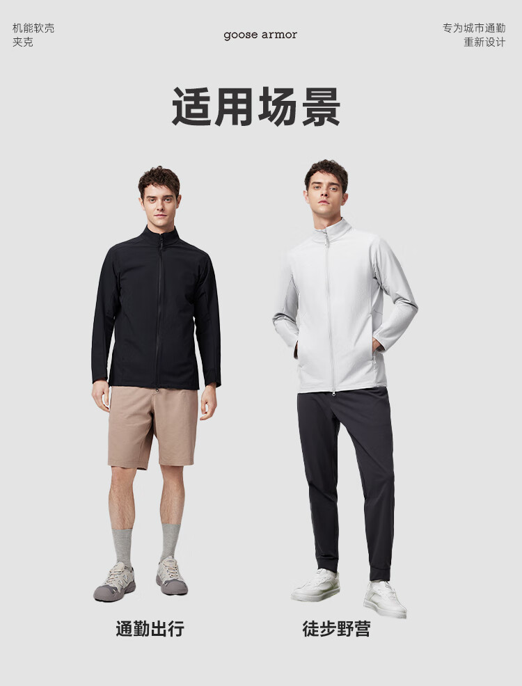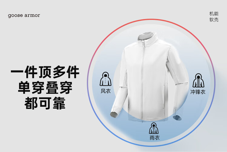 鹅铠甲天石户外运动防风软壳衣男士无帽款跑步徒步弹力休闲薄款夹克G618