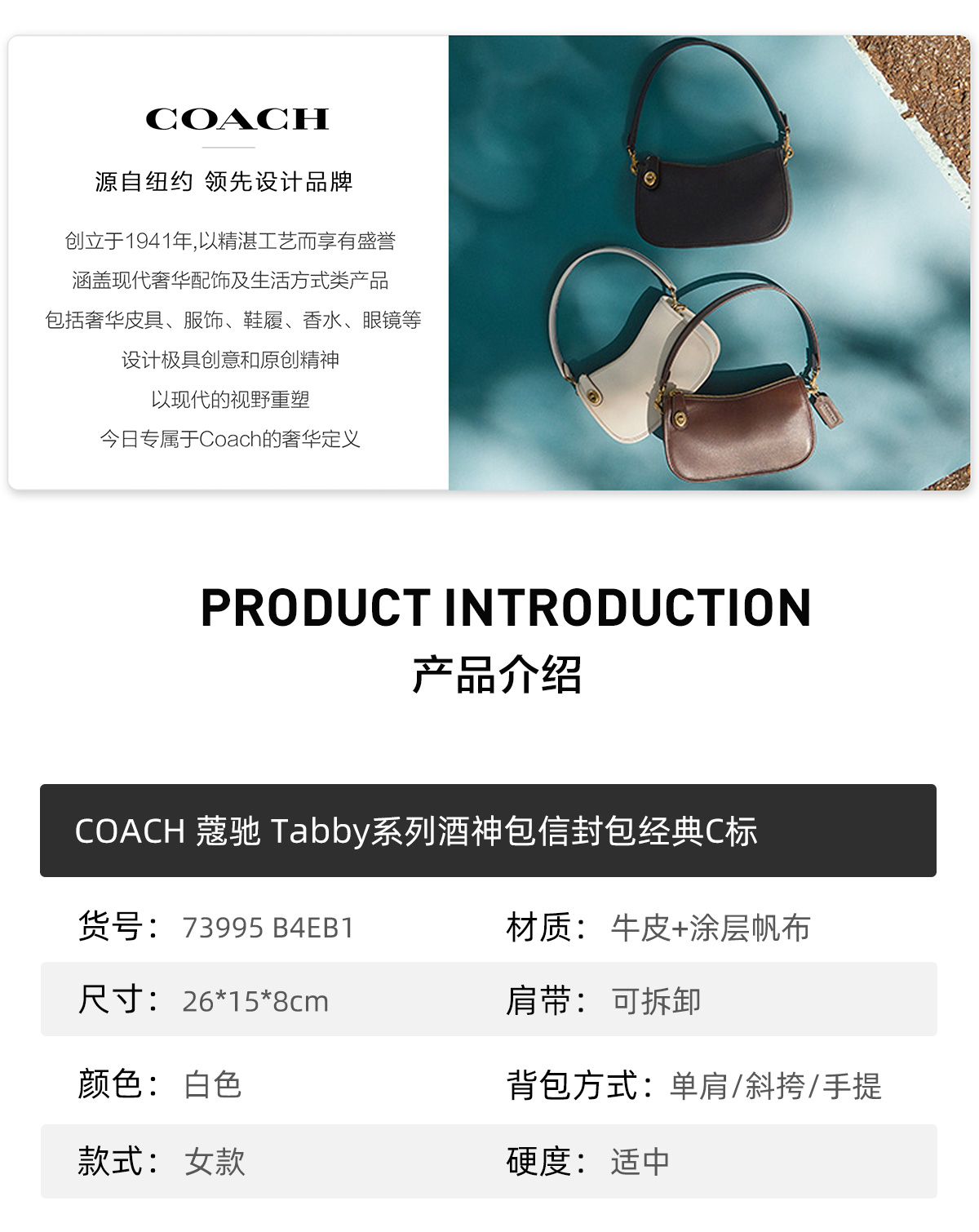 COACH蔻驰Tabby系列酒神包信封包经典C标