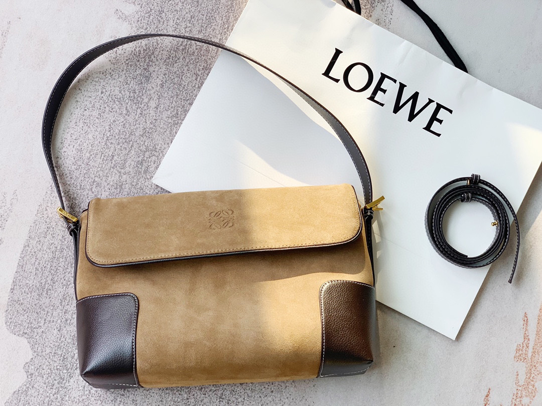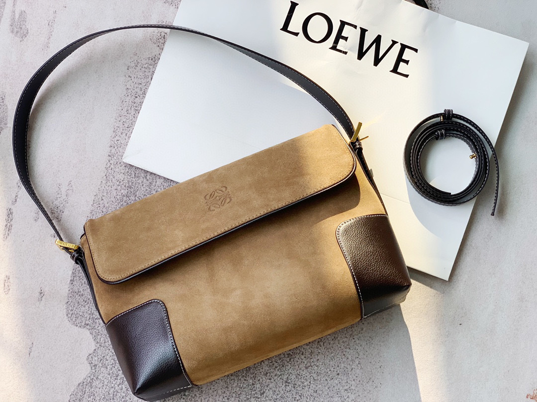 浅色卡其麂皮,四角硬挺牛皮拼接