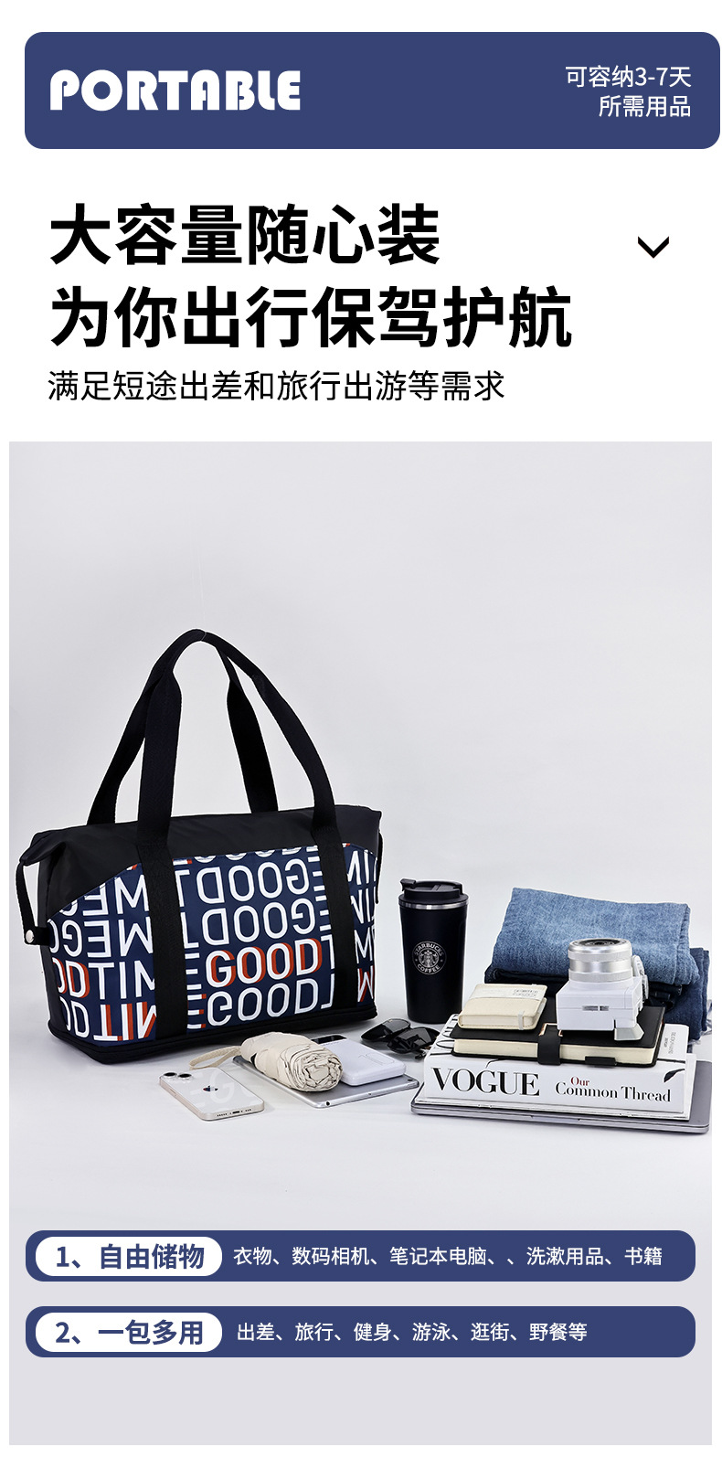 【干湿分离;巨能装!】新款字母旅行包,容量大到可以轻松收纳健身瑜伽用品,防水材质让你无惧各种天气变化,轻便手提设计带给你出行便利,一包搞定所有旅游收纳和出差行李!