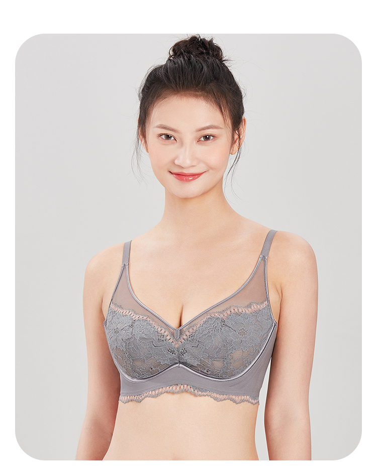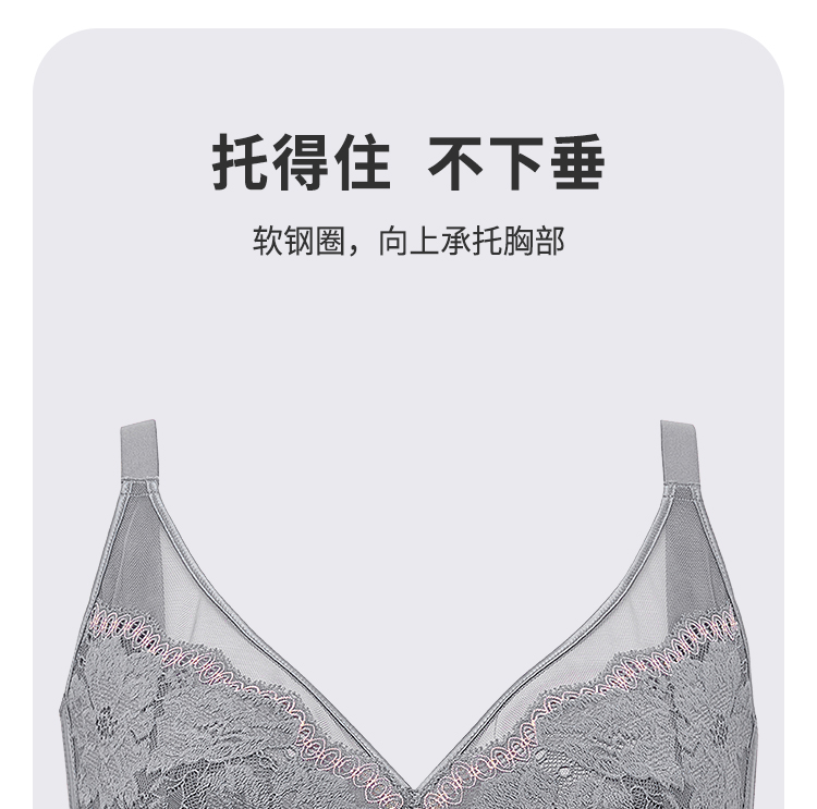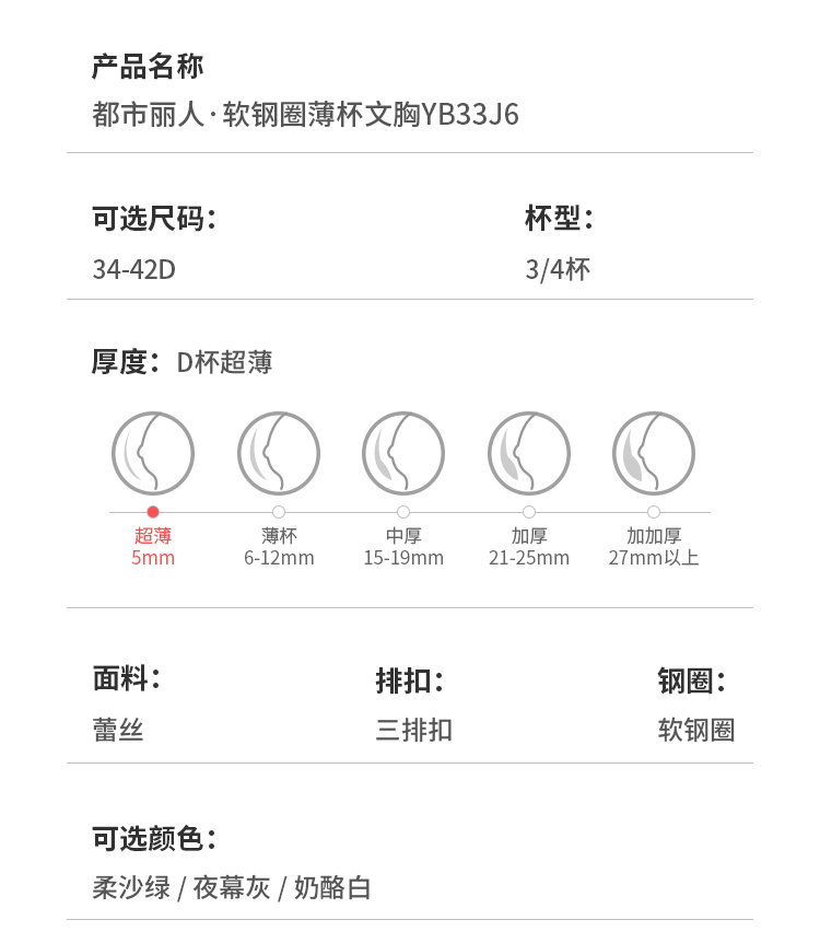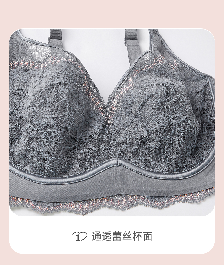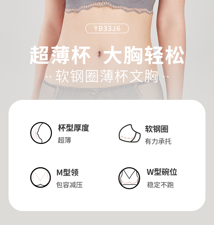 都市丽人完美包容常规内衣D杯超薄3/4杯蕾丝文胸三排软钢圈YB33J6