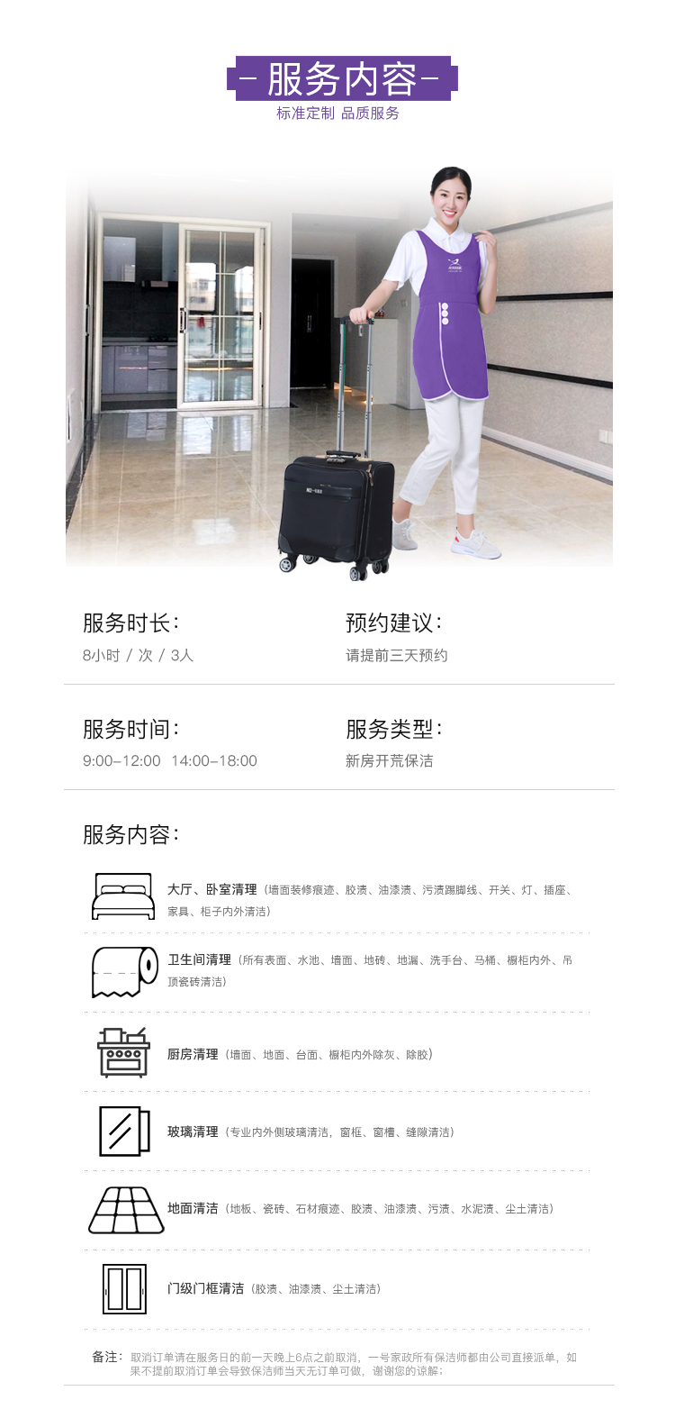 新居、居家开荒保洁上门服务(仅限广州、深圳地区,不足50㎡房屋建筑面积,按照50㎡起拍)