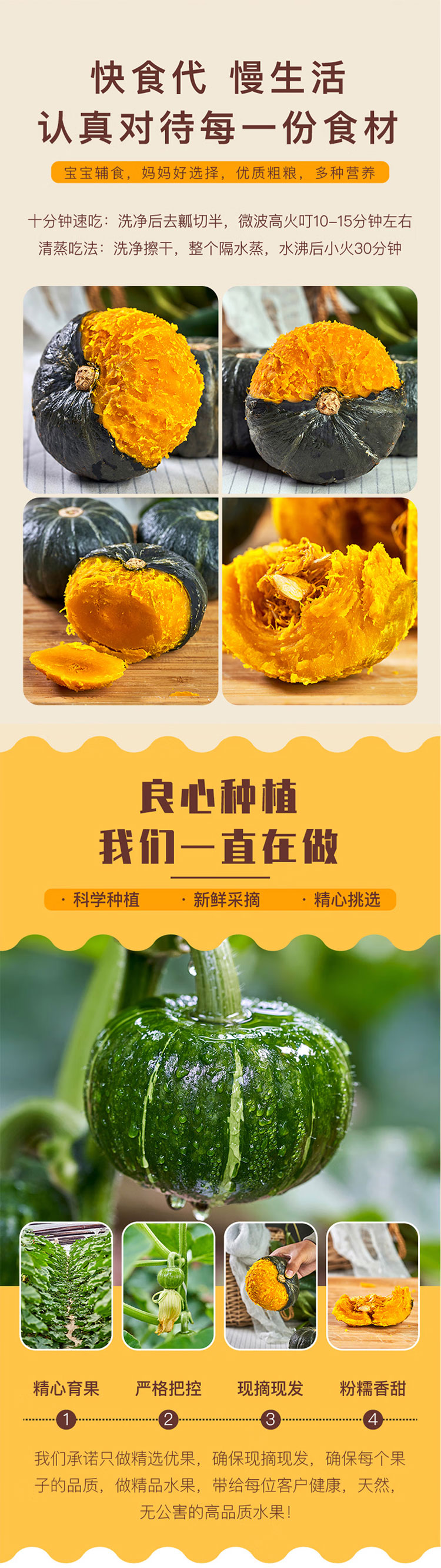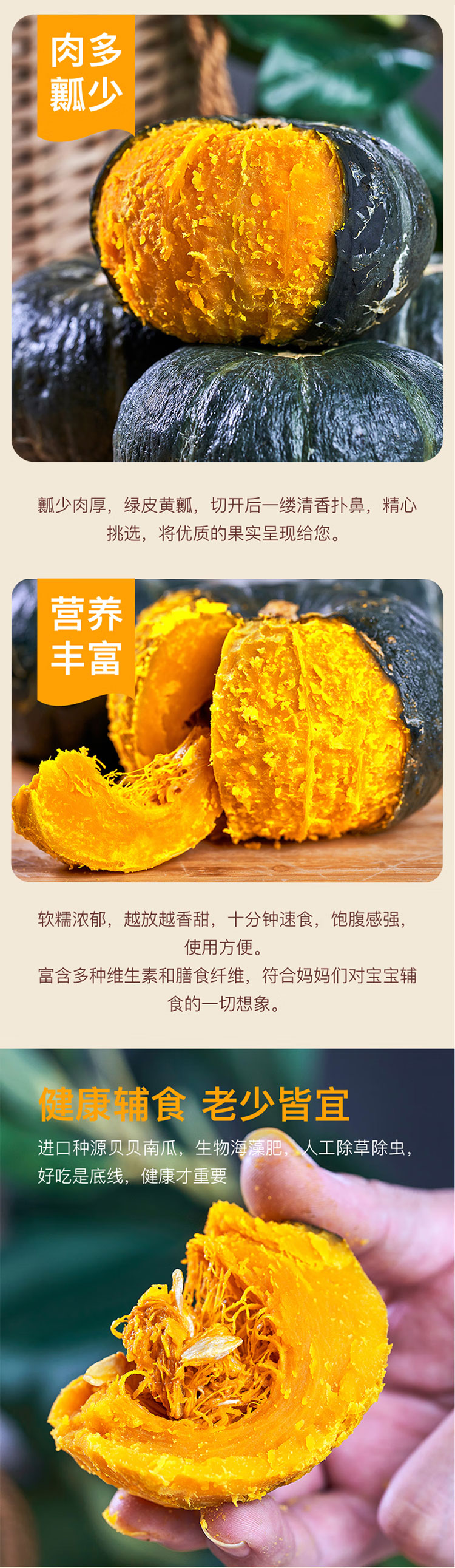 佐禧佑福 山东正宗贝贝南瓜 粉面香甜小南瓜 香甜软糯产地直发