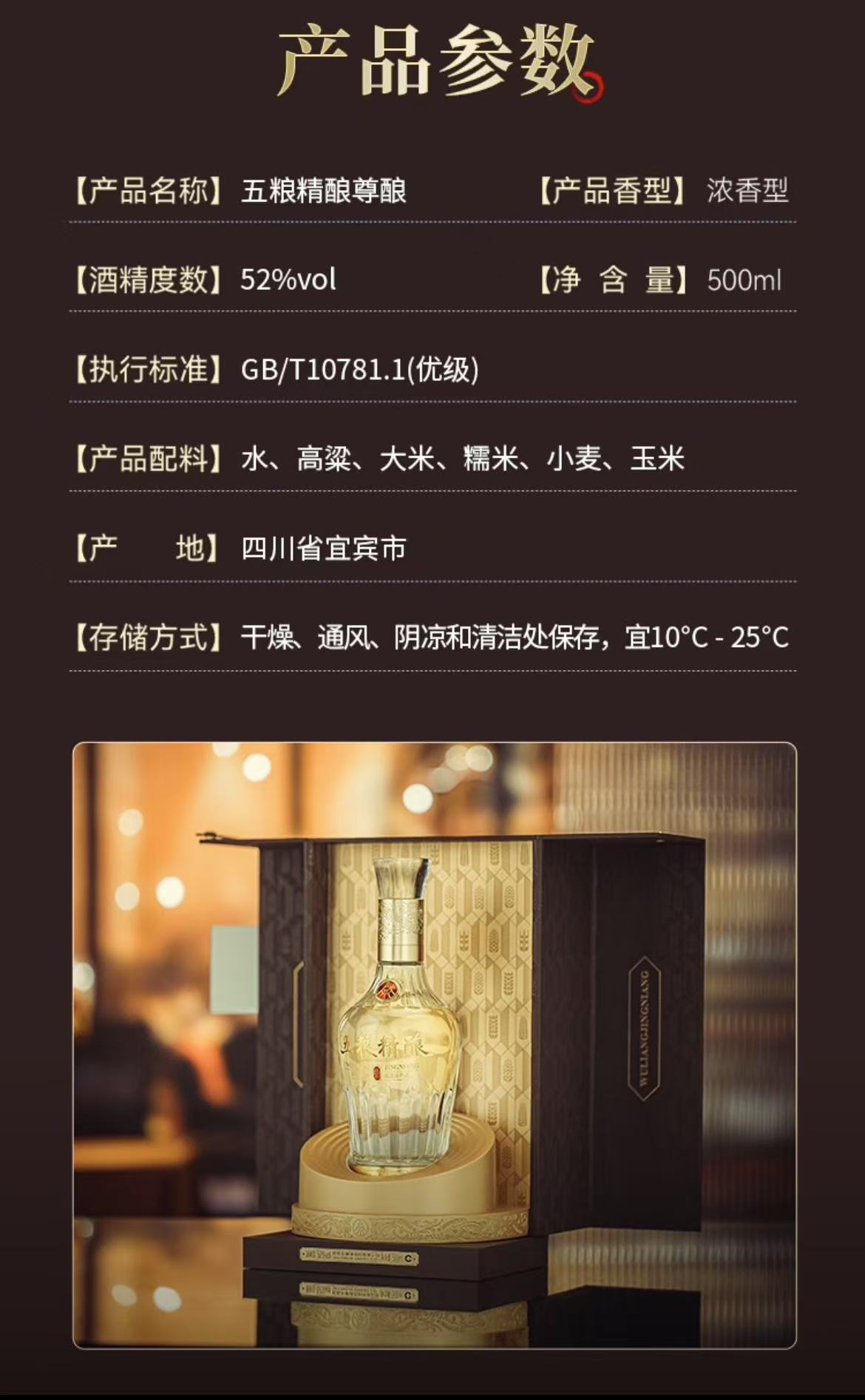 五粮液·五粮精酿尊酿52度500ml 浓香型白酒【直选好酒-包邮】