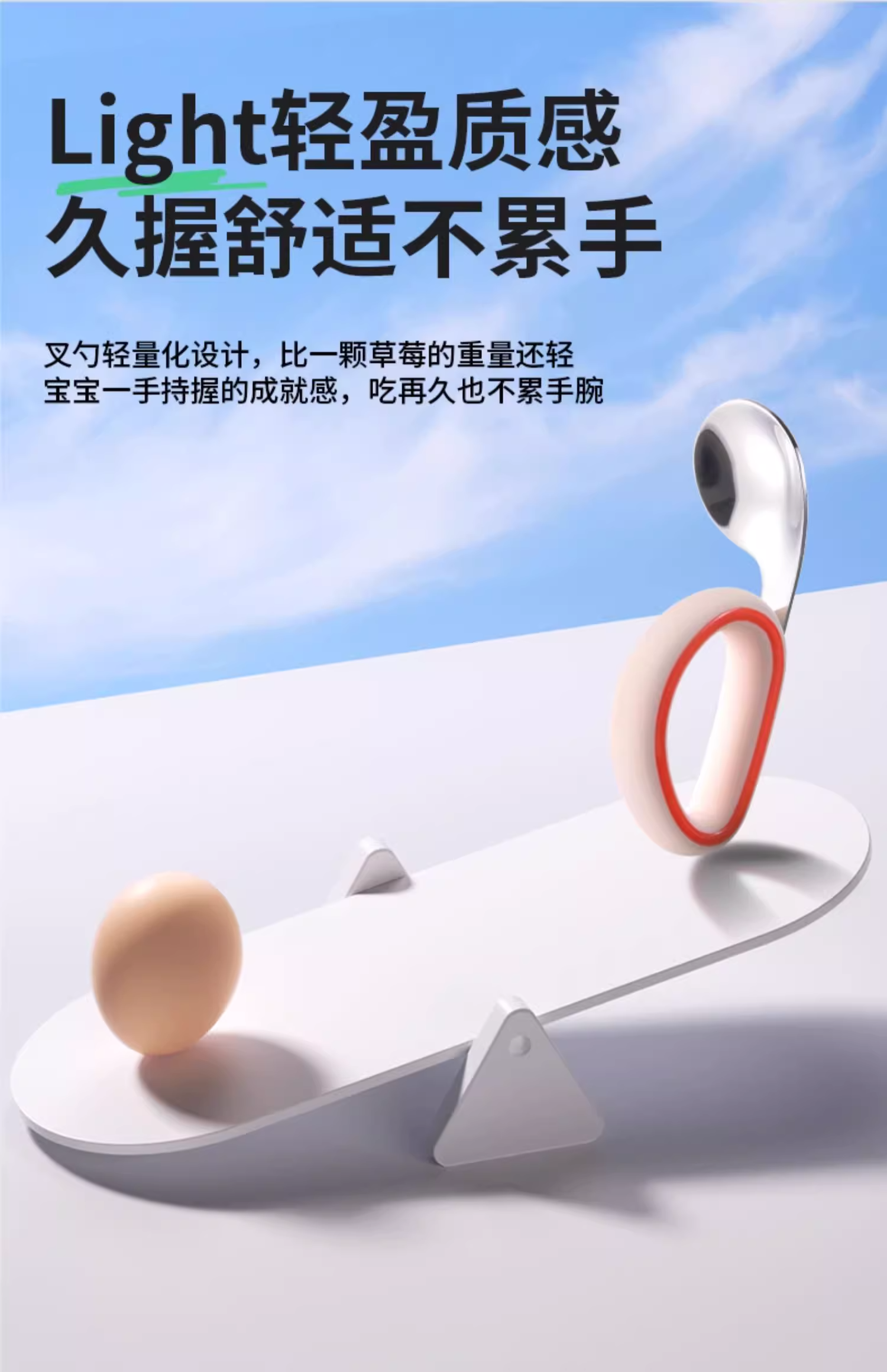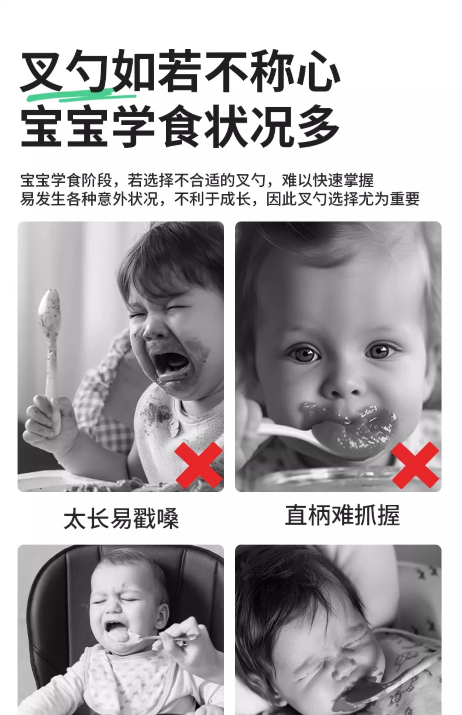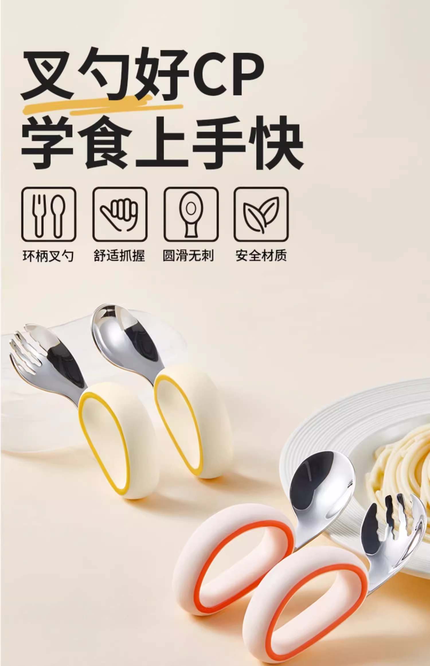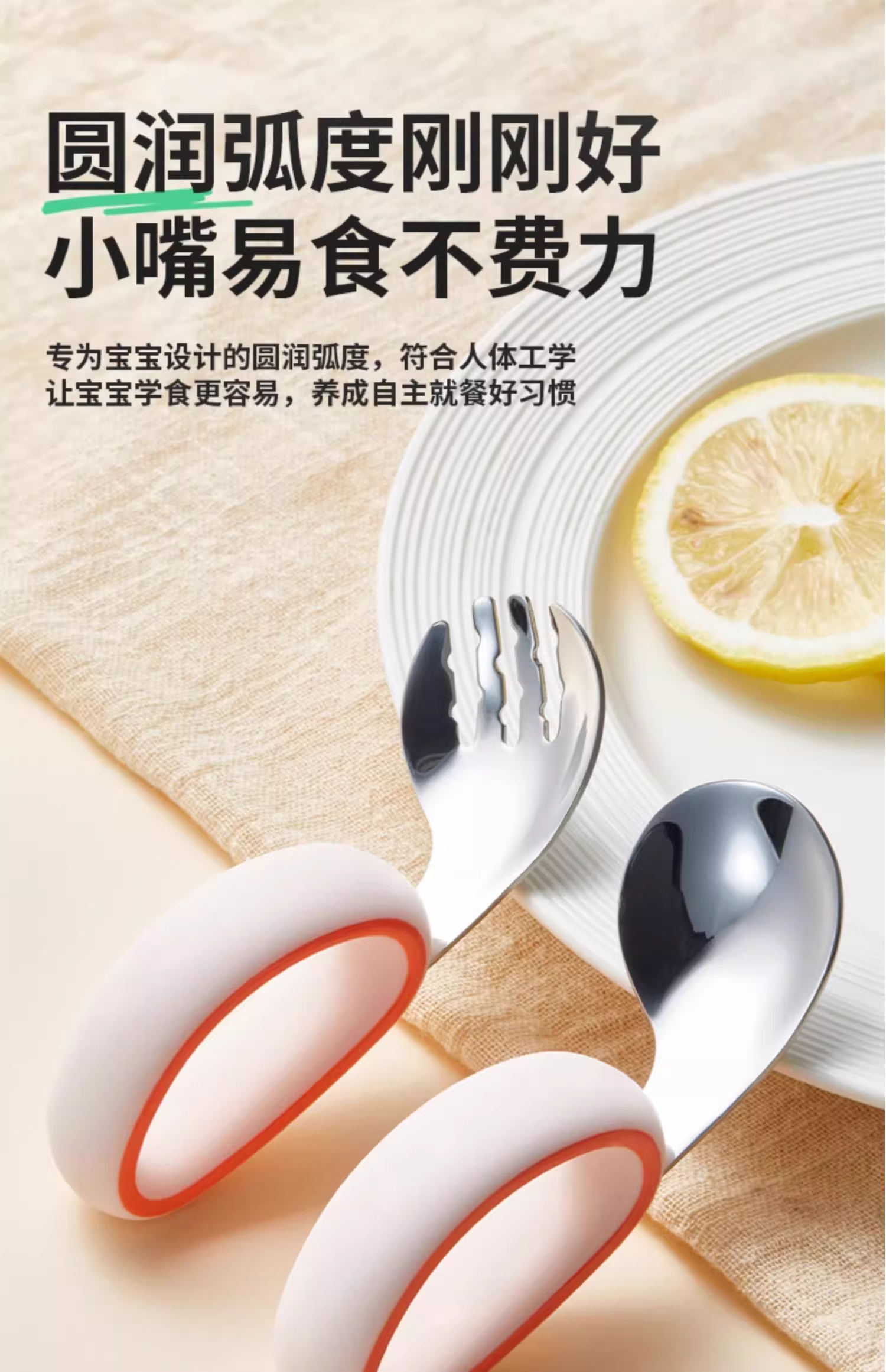 科巢宝宝自主进食辅食勺子316L不锈钢婴儿学吃饭训练儿童专用短柄