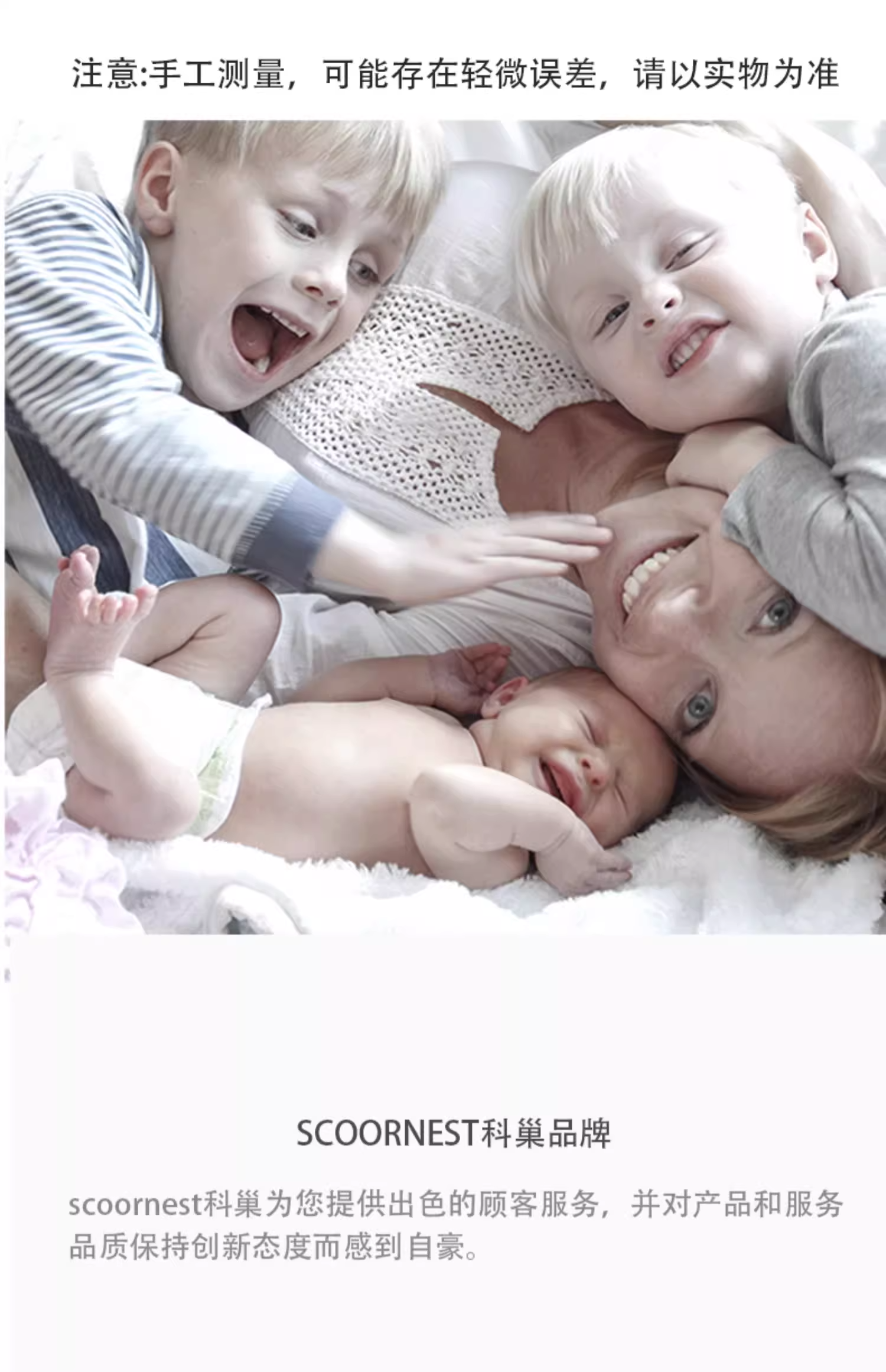 - Scoornest始终秉承给每一位宝宝送去科学的、关心的、创新的成长体验,通过提供商品和服务,使顾客形成守护、发展、巩固这种弥足珍贵的亲情的爱。