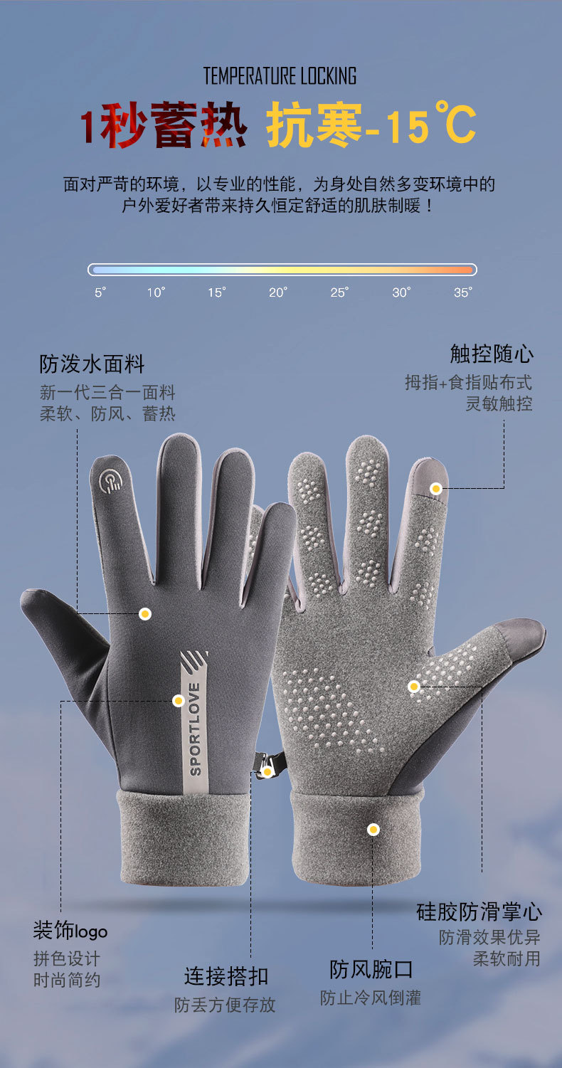 【保暖必备】冬季加绒加厚保暖男士滑雪手套,情侣同款保暖手套,聚热锁温,防水、防滑、防风,摩托车手套、骑行防风加棉手套,为你的双手提供全方位呵护。感受宛如温泉般的温暖,自由畅快!
