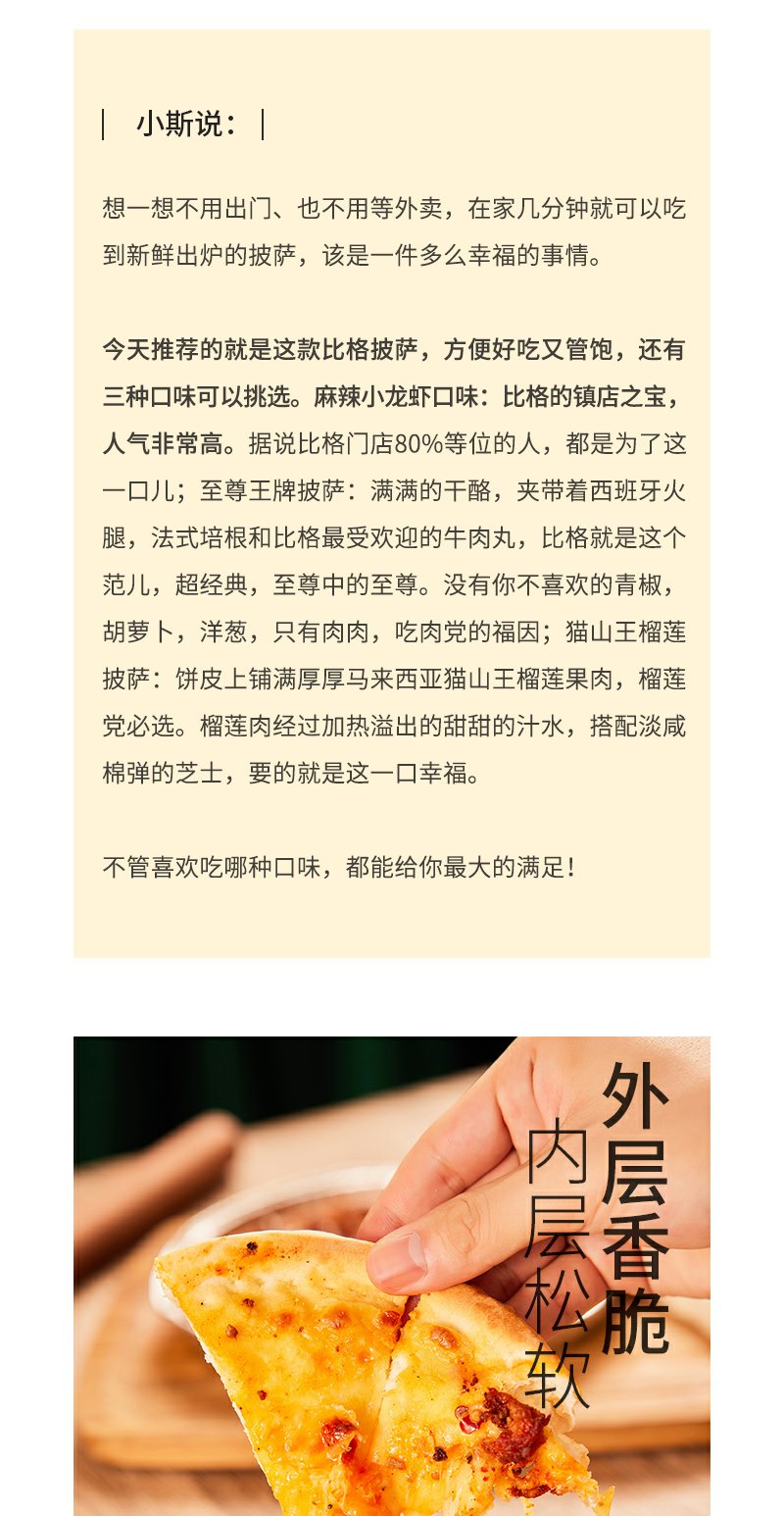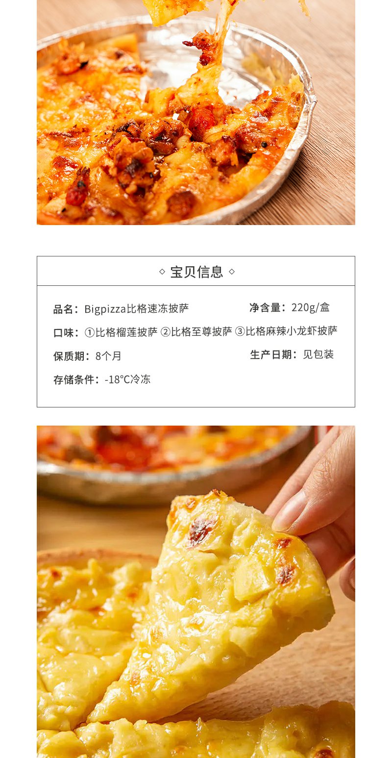 【年货节】【芝士就是力量】超火的比格披萨DIY装,不用出门、不用点外,在家几分钟就能吃到新鲜出炉的美味披萨,榴莲、至尊、小龙虾三种口味!4盒装|7寸|保质期8/12个月