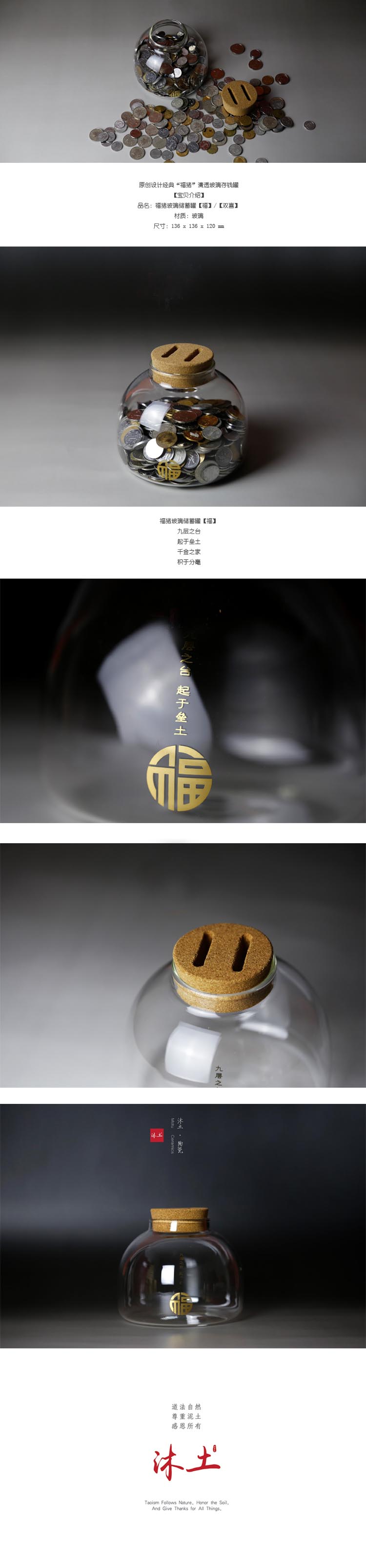 原创手工清透玻璃存钱罐