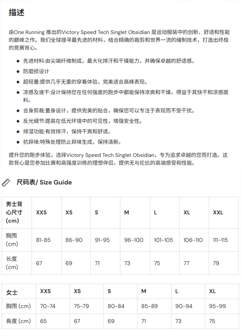 One Running Victory Speed OBSIDIAN 黑曜石 运动背心