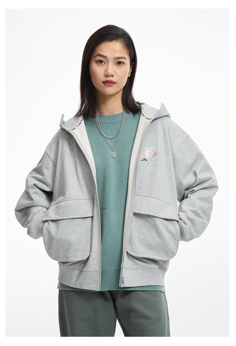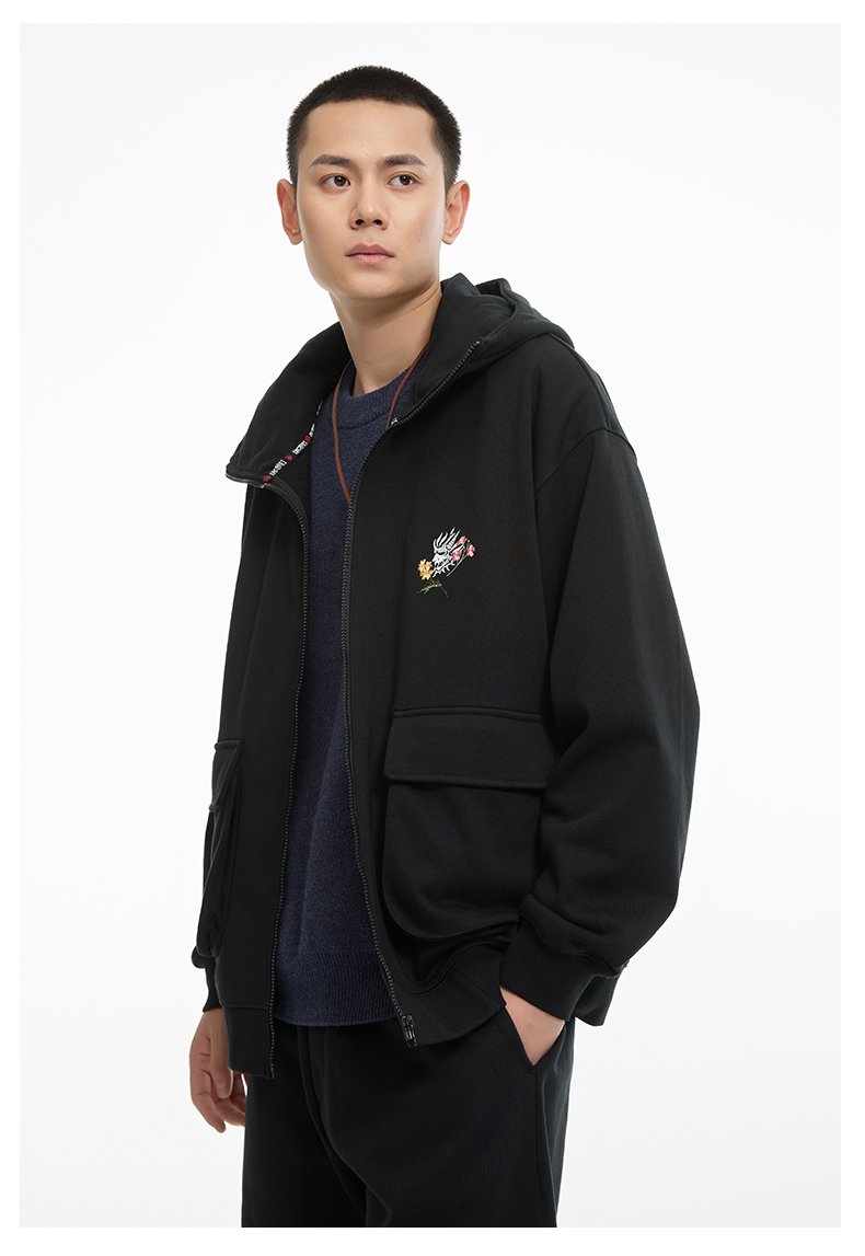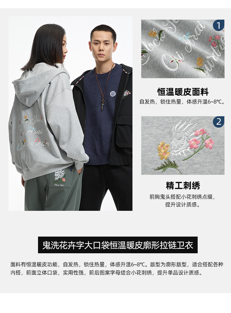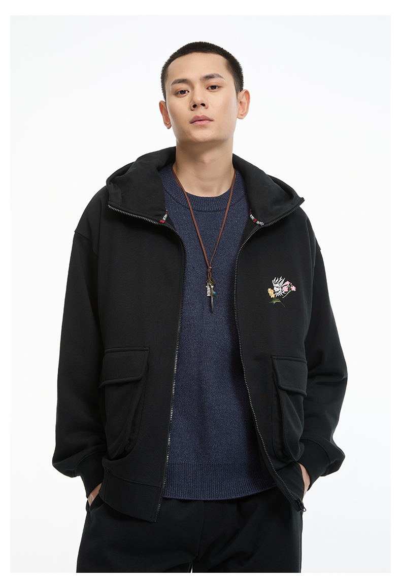 ONIARAI/鬼洗24秋花卉大口袋恒温暖皮廓形开衫卫衣男女款 B340197