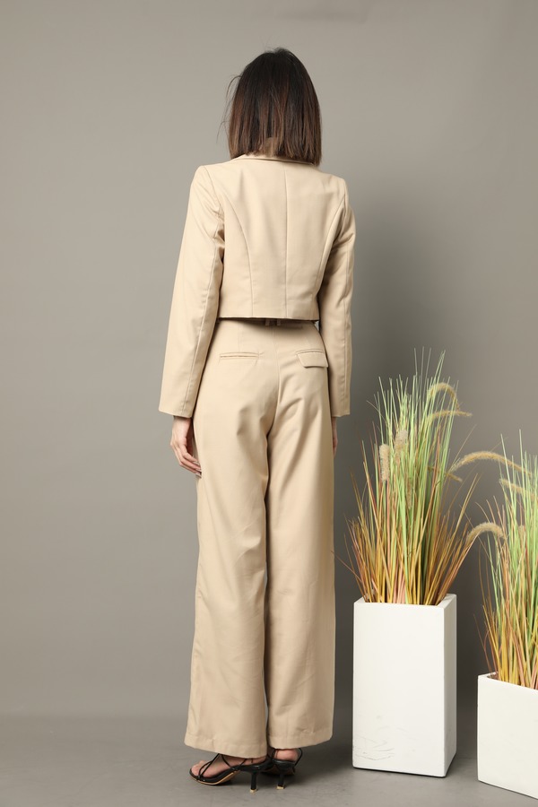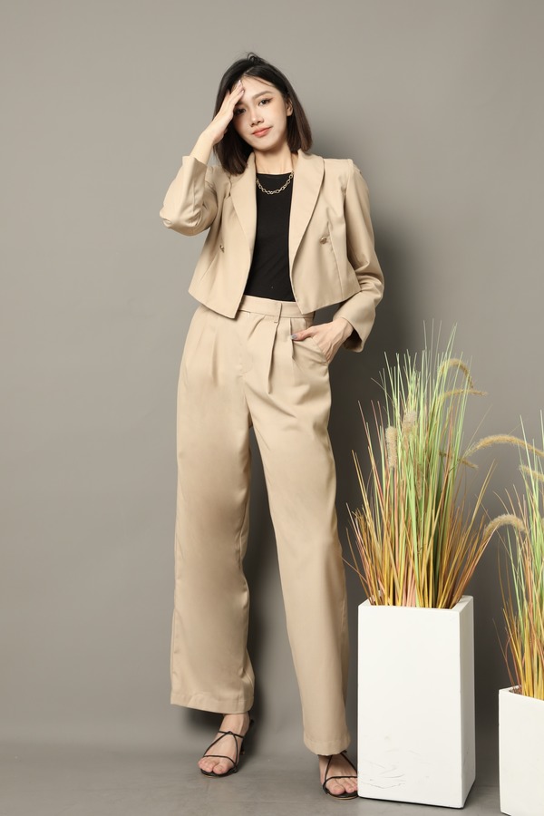 ESTELLICA 浅卡其短款外套西装套装 16888