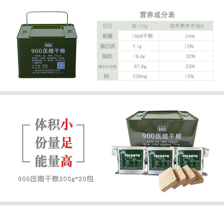 900和90压缩饼干的区别:900是北戴河90年代推出的经典压缩干粮,畅销30年。90是09年推出的升级版,全面优化升级,热量值更高,主要配方区别为添加了全脂奶粉。