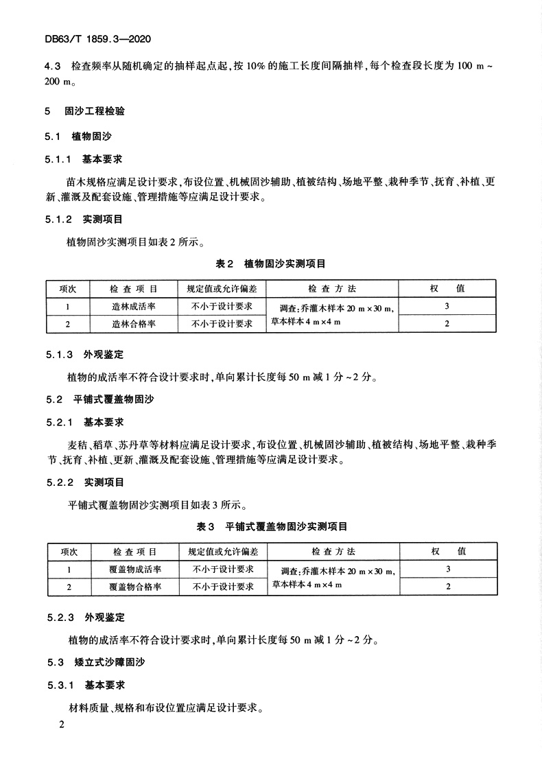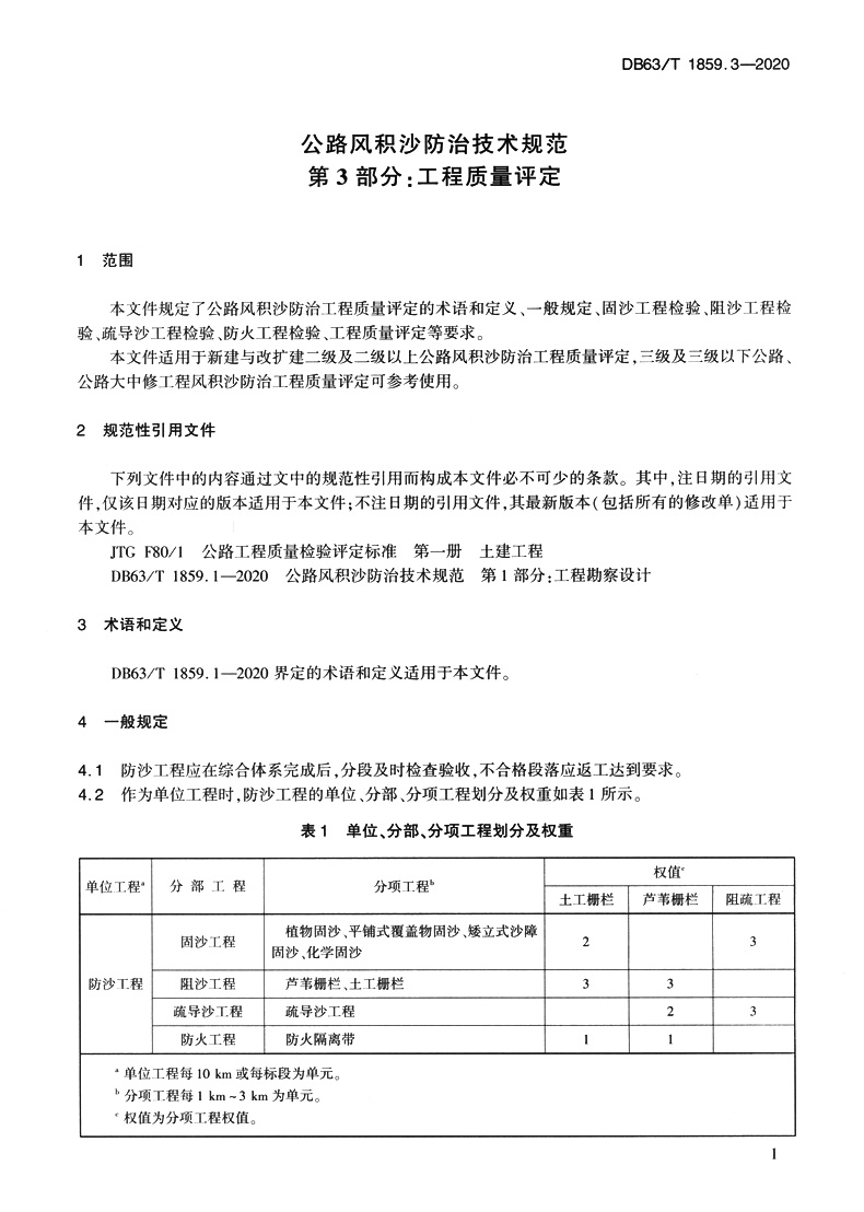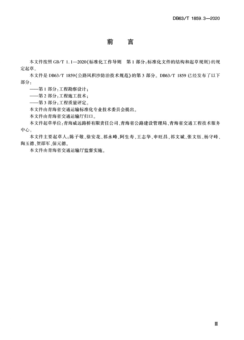 书名:公路风积沙防治技术规范 第3部分:工程质量评定(DB63/T 1859.3—2020)
