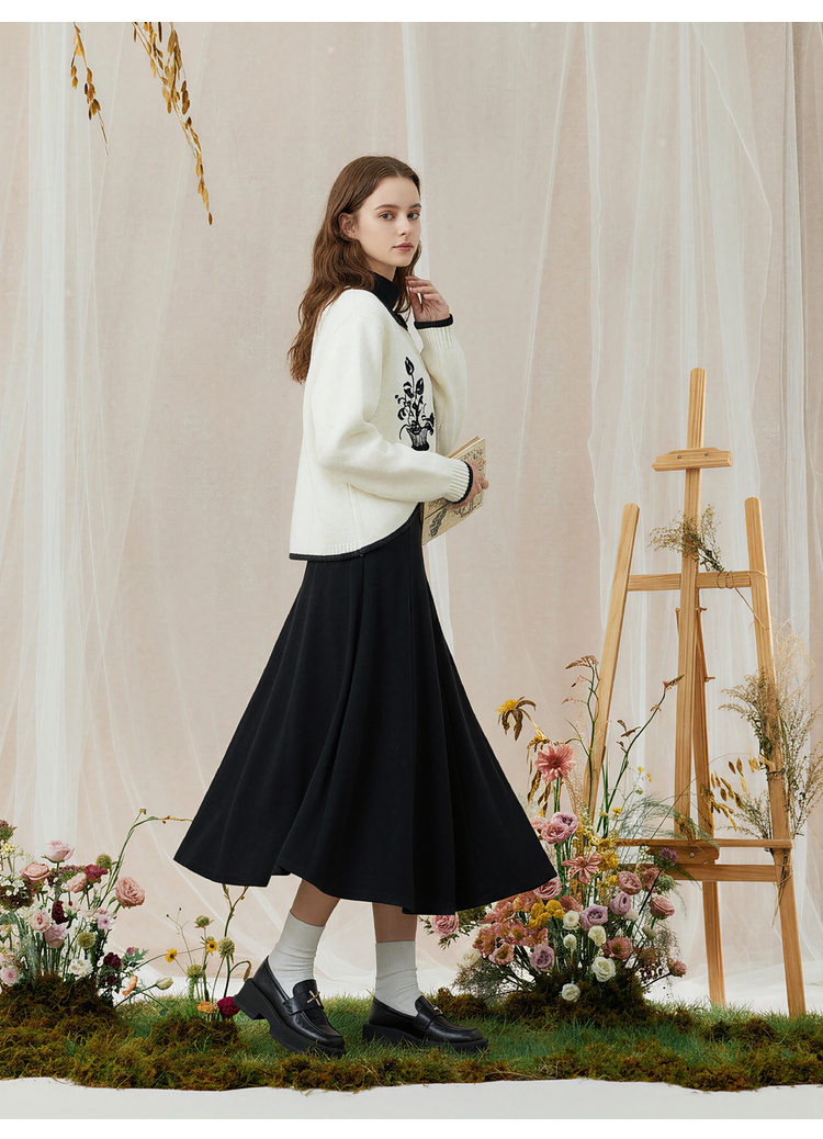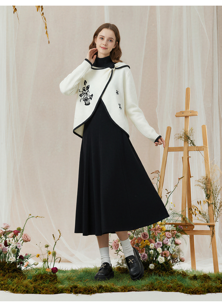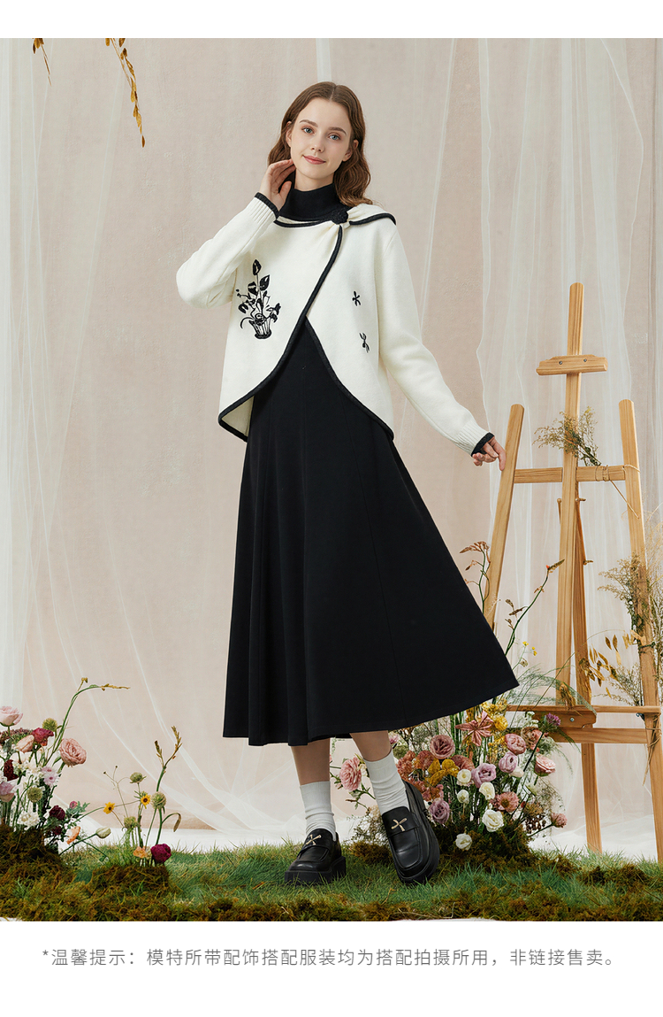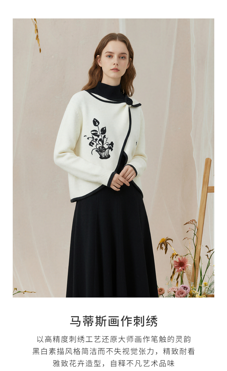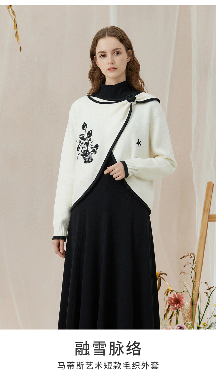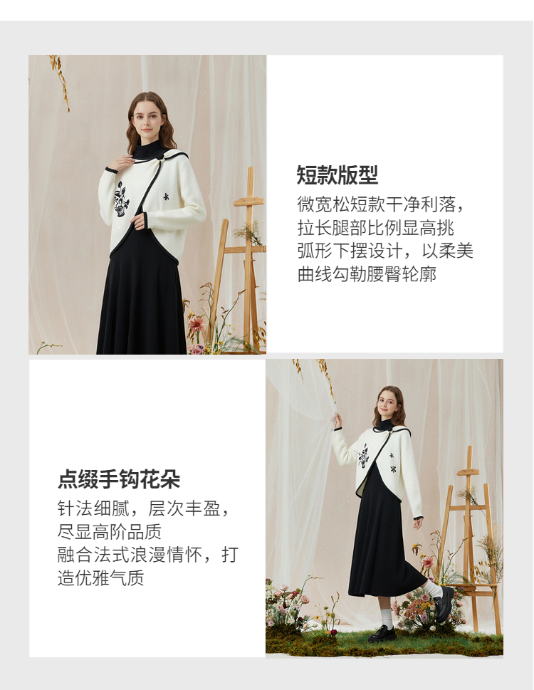 两三事 融雪脉络 2025冬季新款复古绣花立体钩花装饰毛衣女