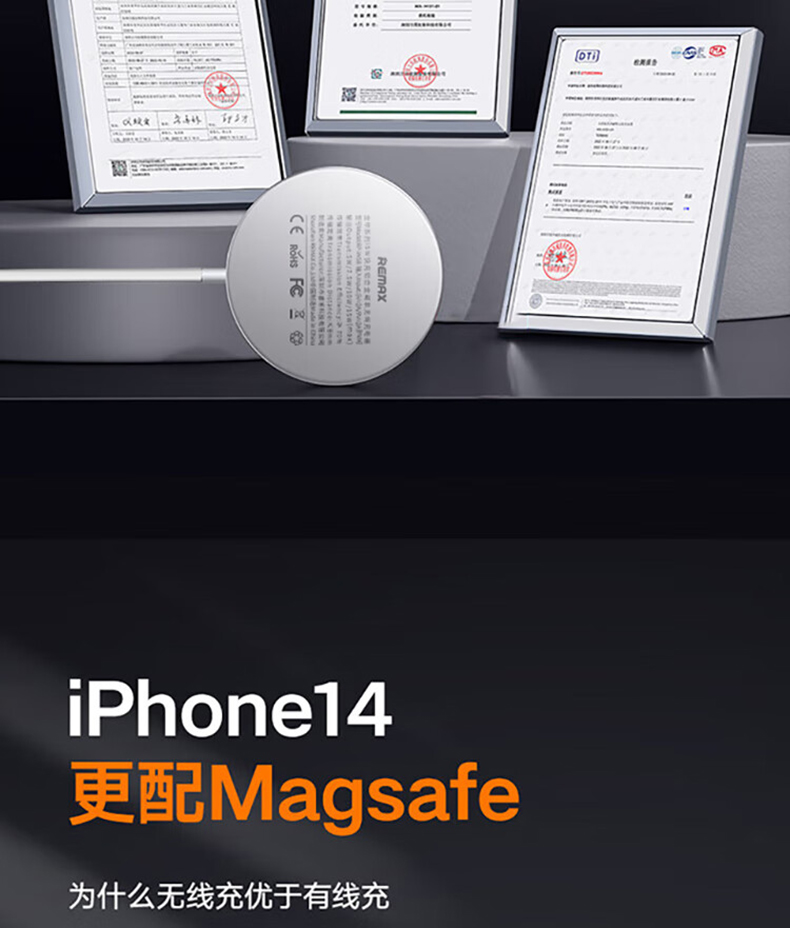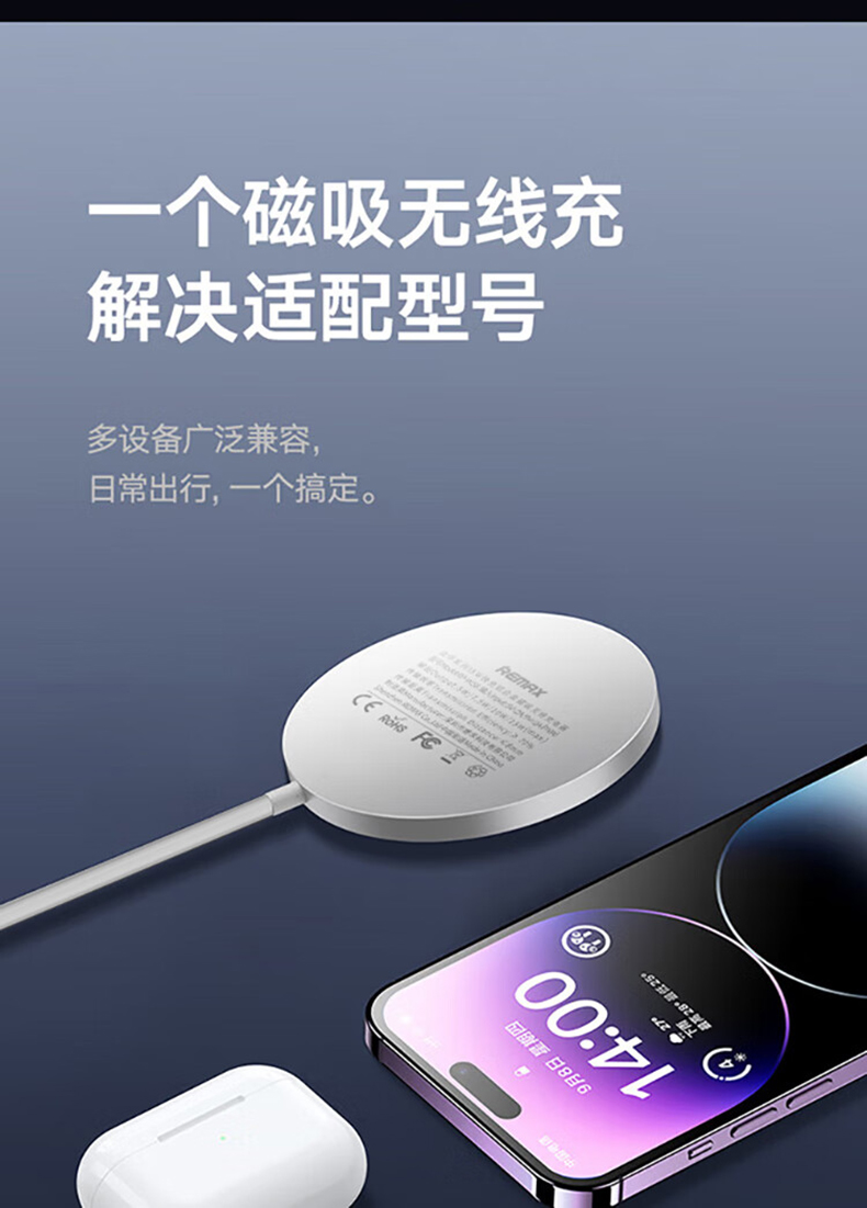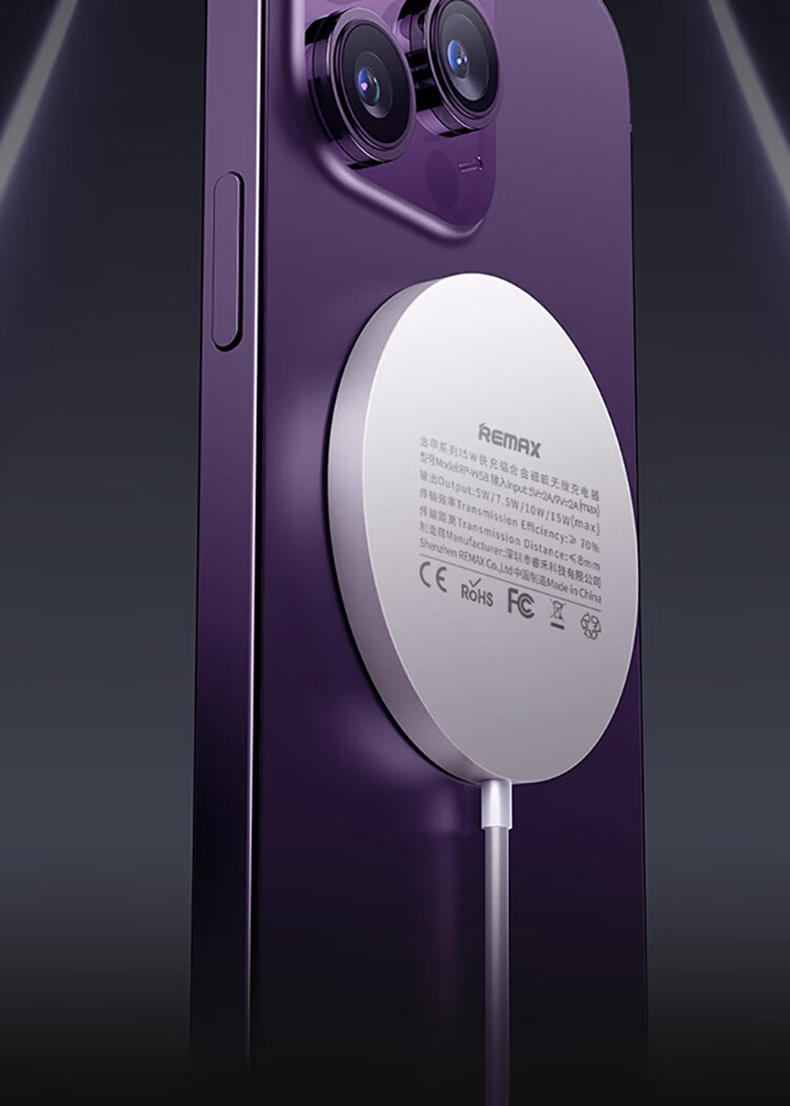 REMAX铝合金15W快充磁吸无线充电器RP-W58 银色