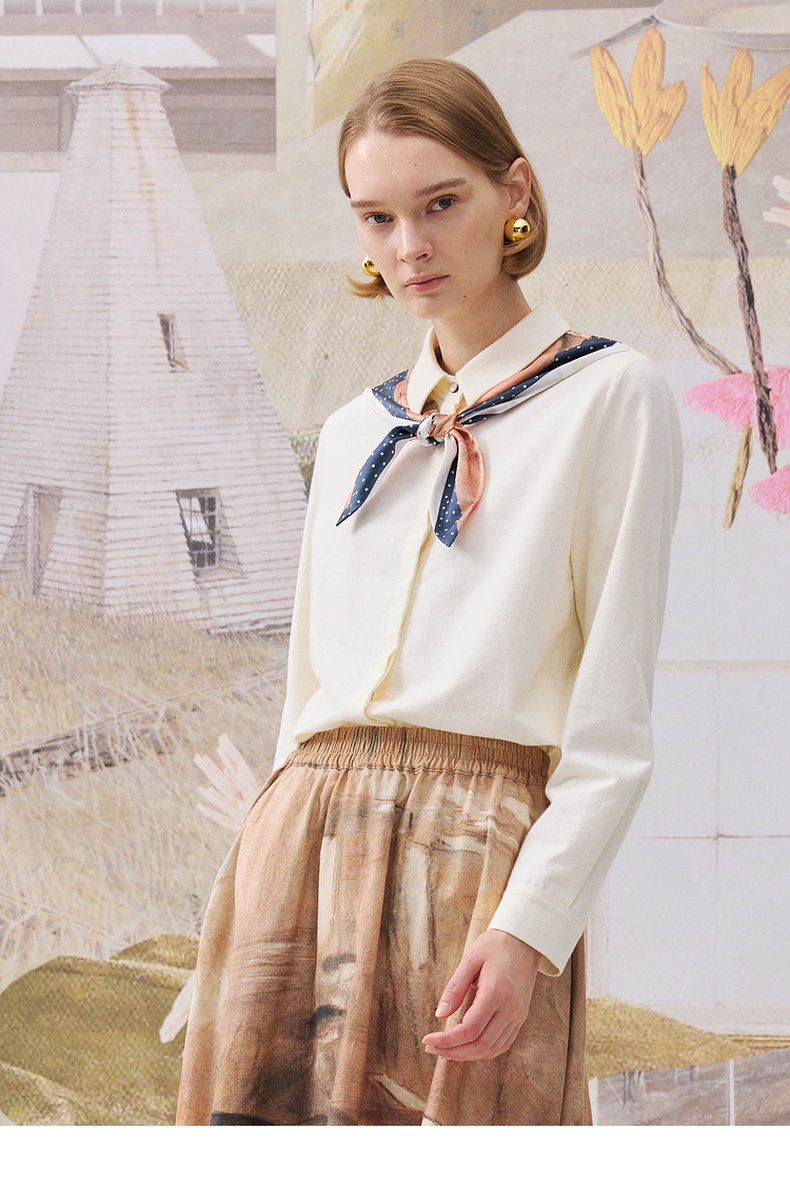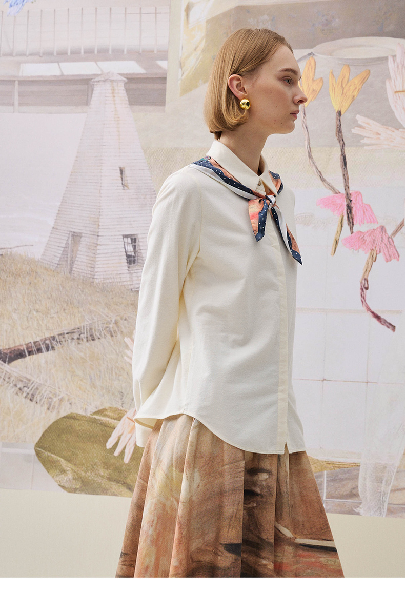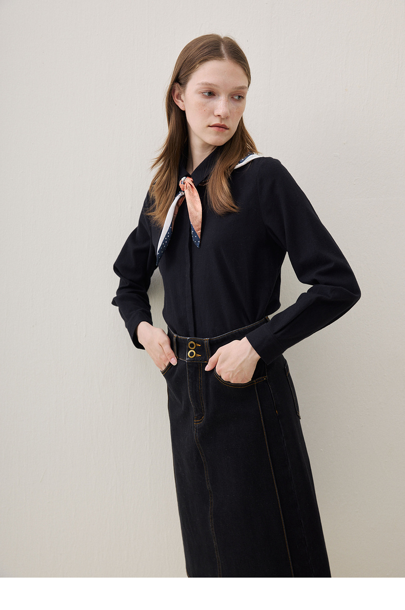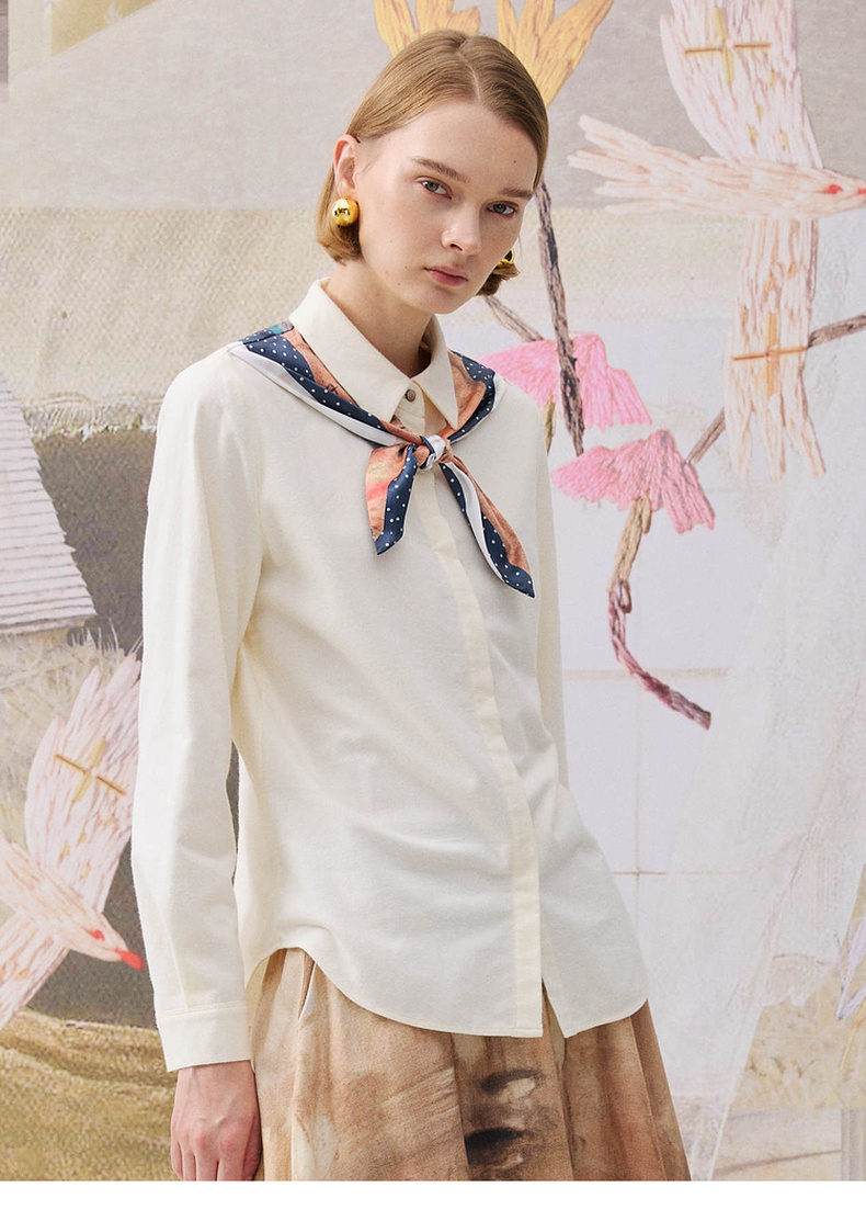 谜底纯棉磨毛衬衣长袖2025年冬季新品通勤风丝巾衬衫女254MC1710