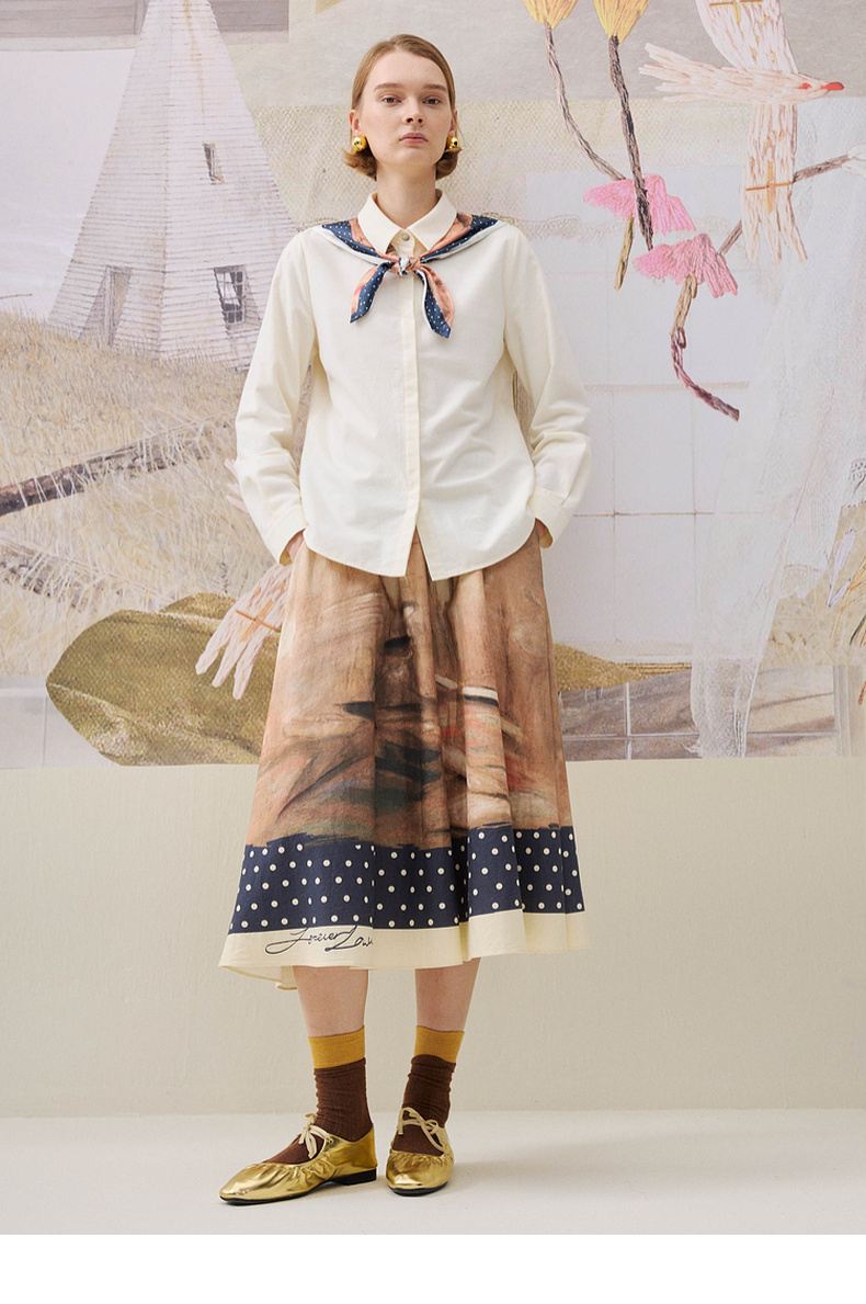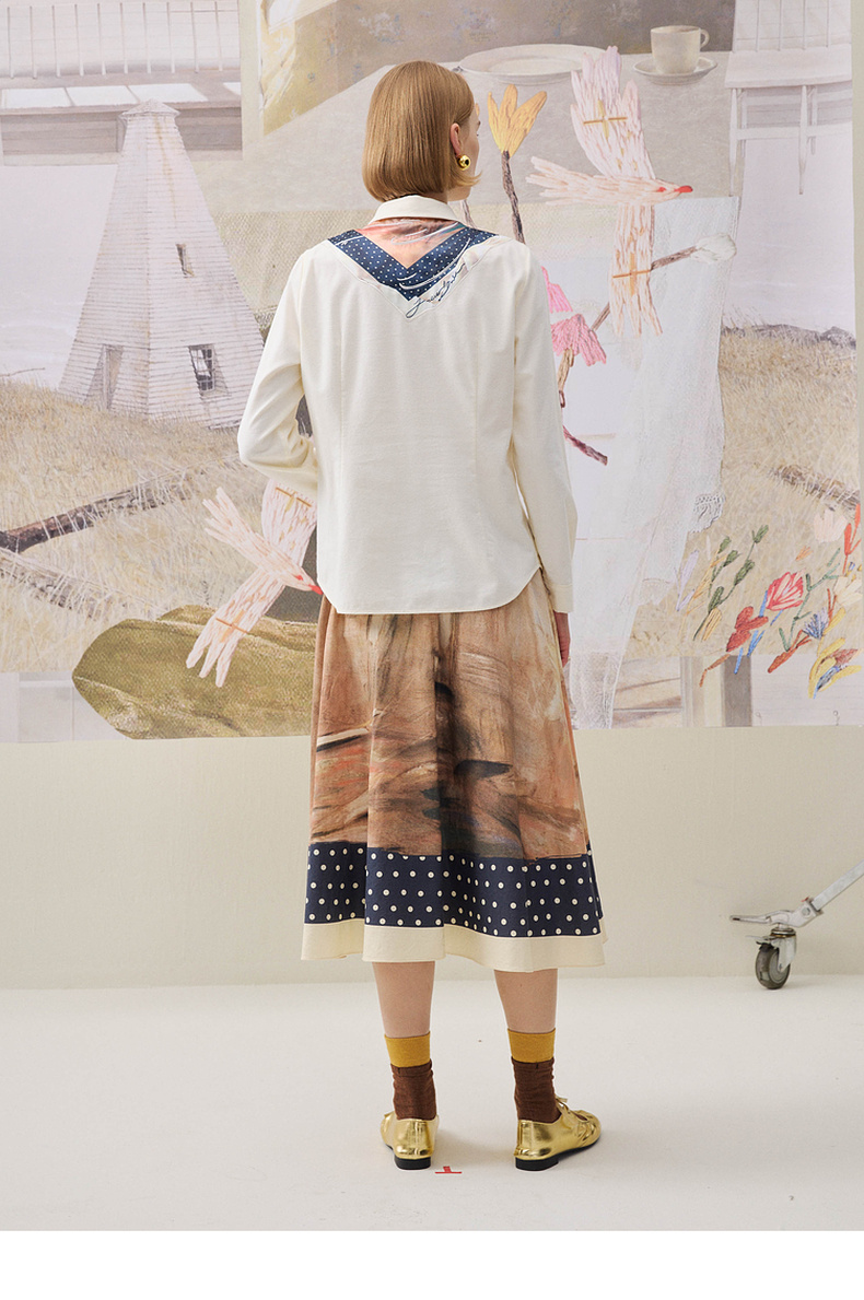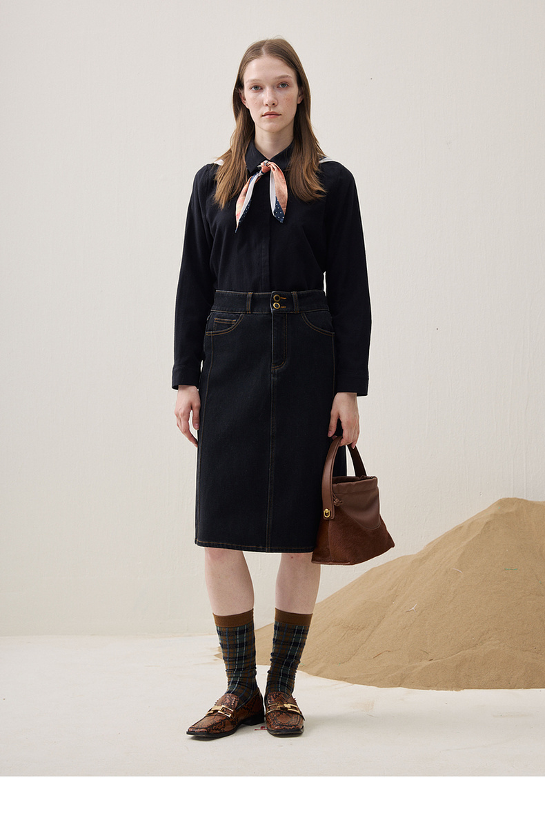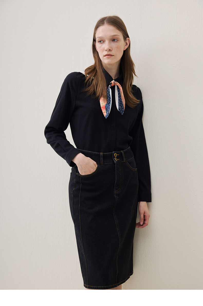 谜底纯棉磨毛衬衣长袖2025年冬季新品通勤风丝巾衬衫女254MC1710