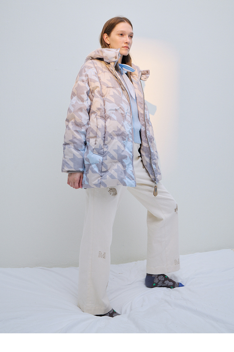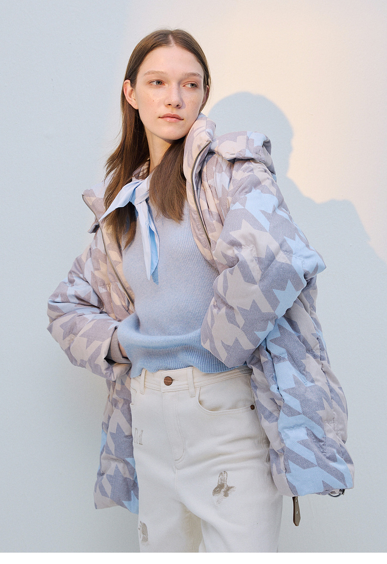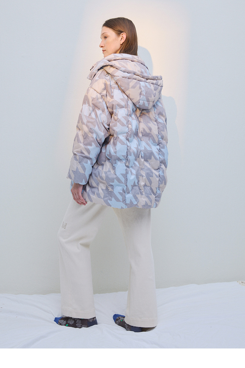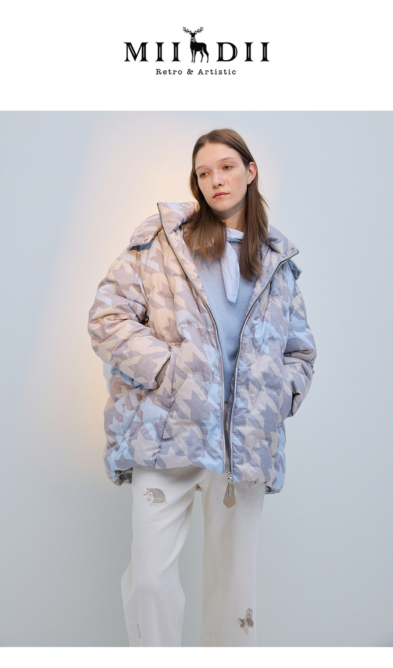 谜底花色羽绒服2025年冬季新品千鸟格时髦温暖亲肤女254MY1712