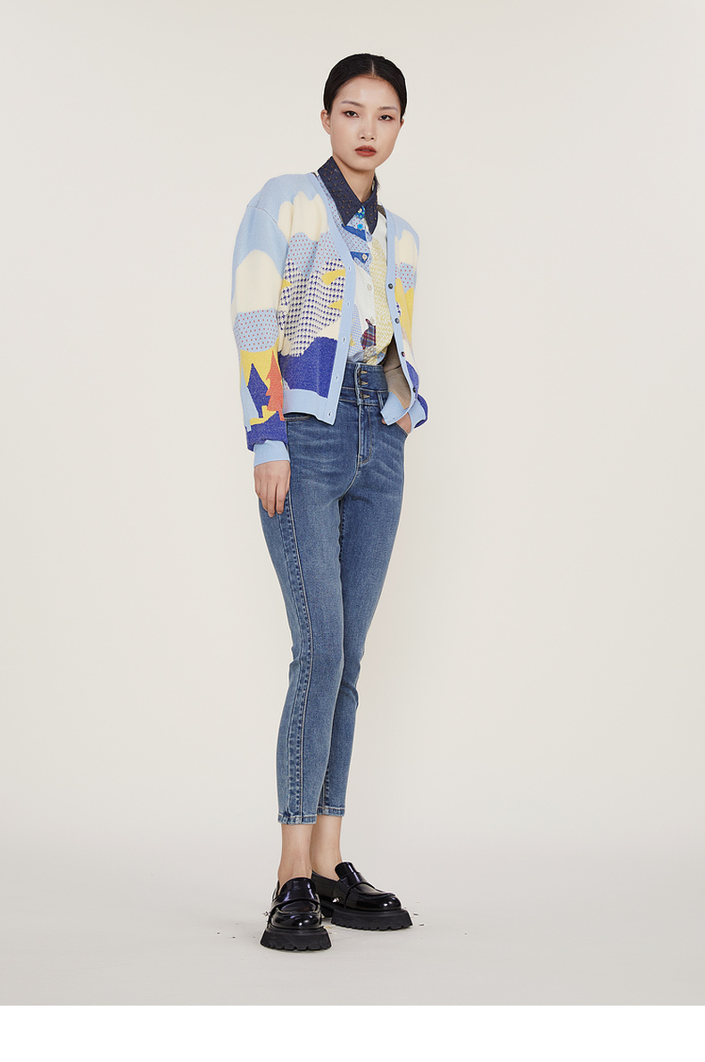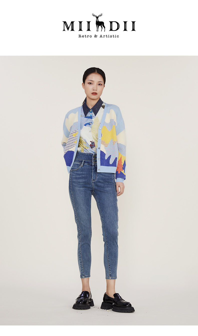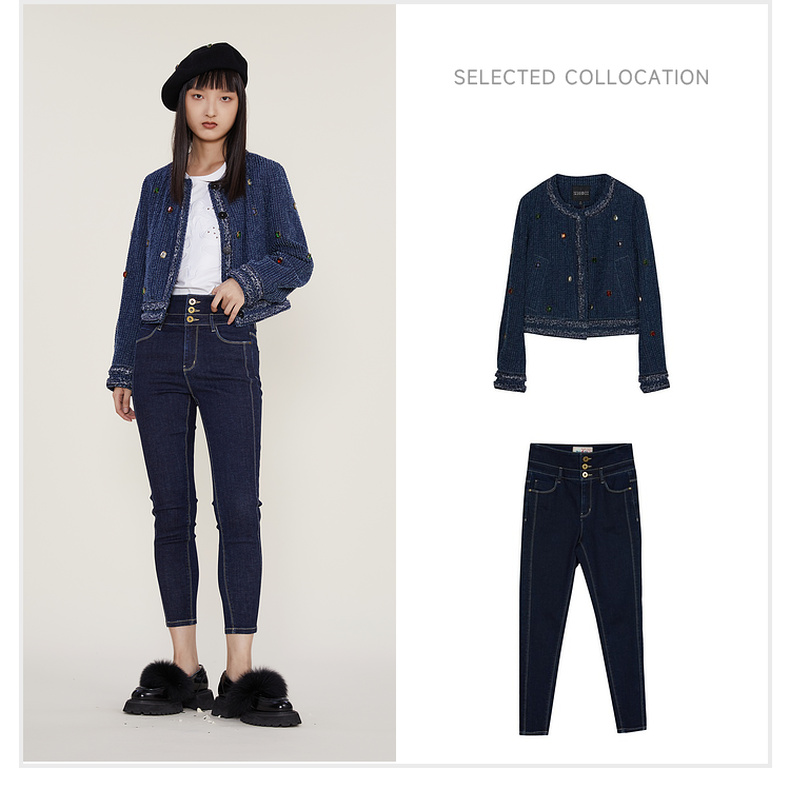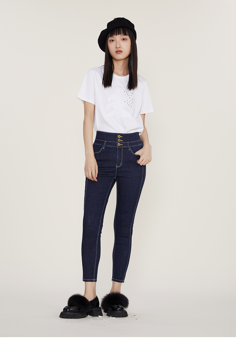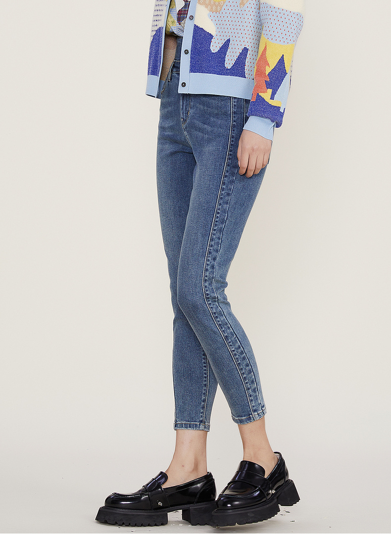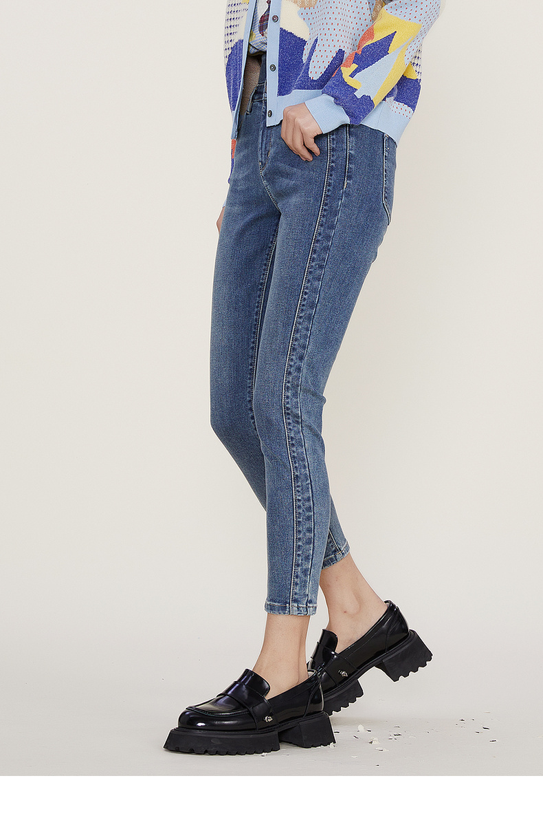 谜底2022冬季新款紧身铅笔裤女时尚百搭小脚九分牛仔裤224MK1625