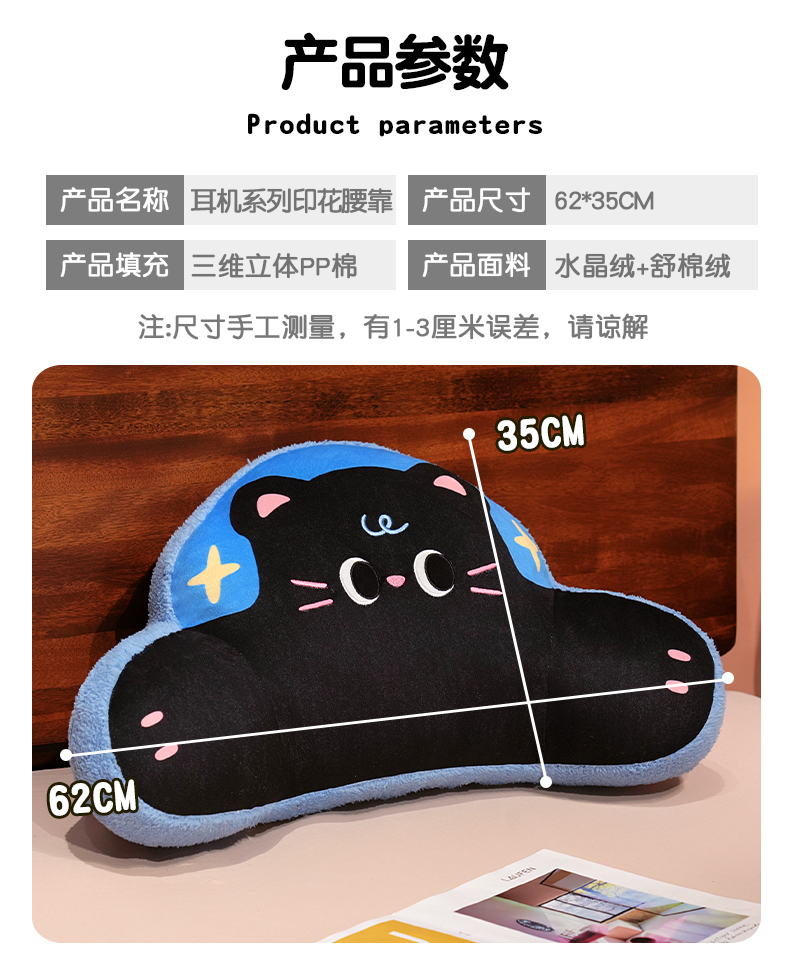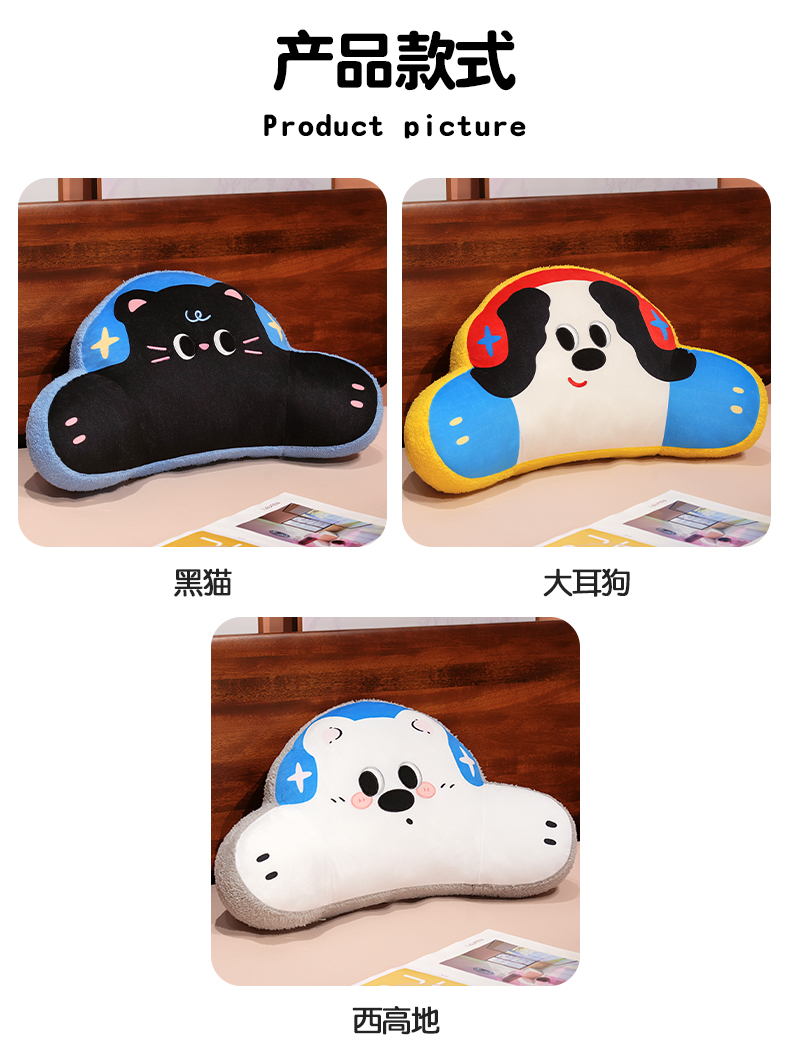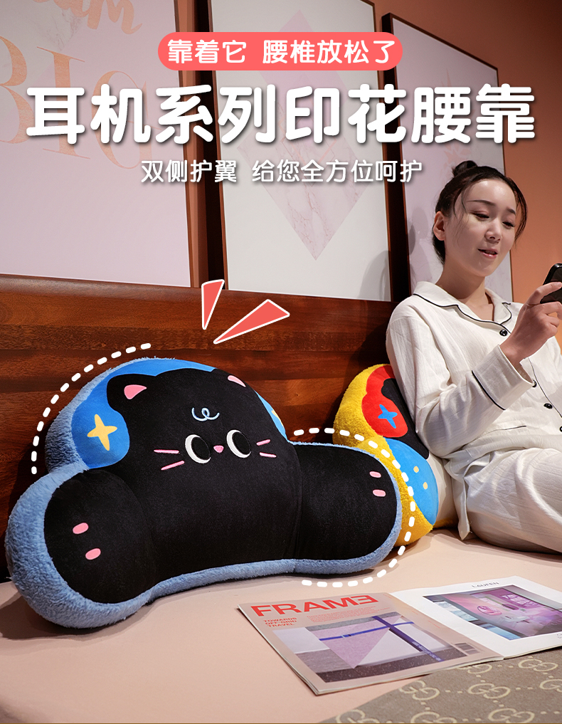 自然醒耳机系列印花腰靠办公室久坐护腰靠垫汽车靠背垫椅子靠枕QYL