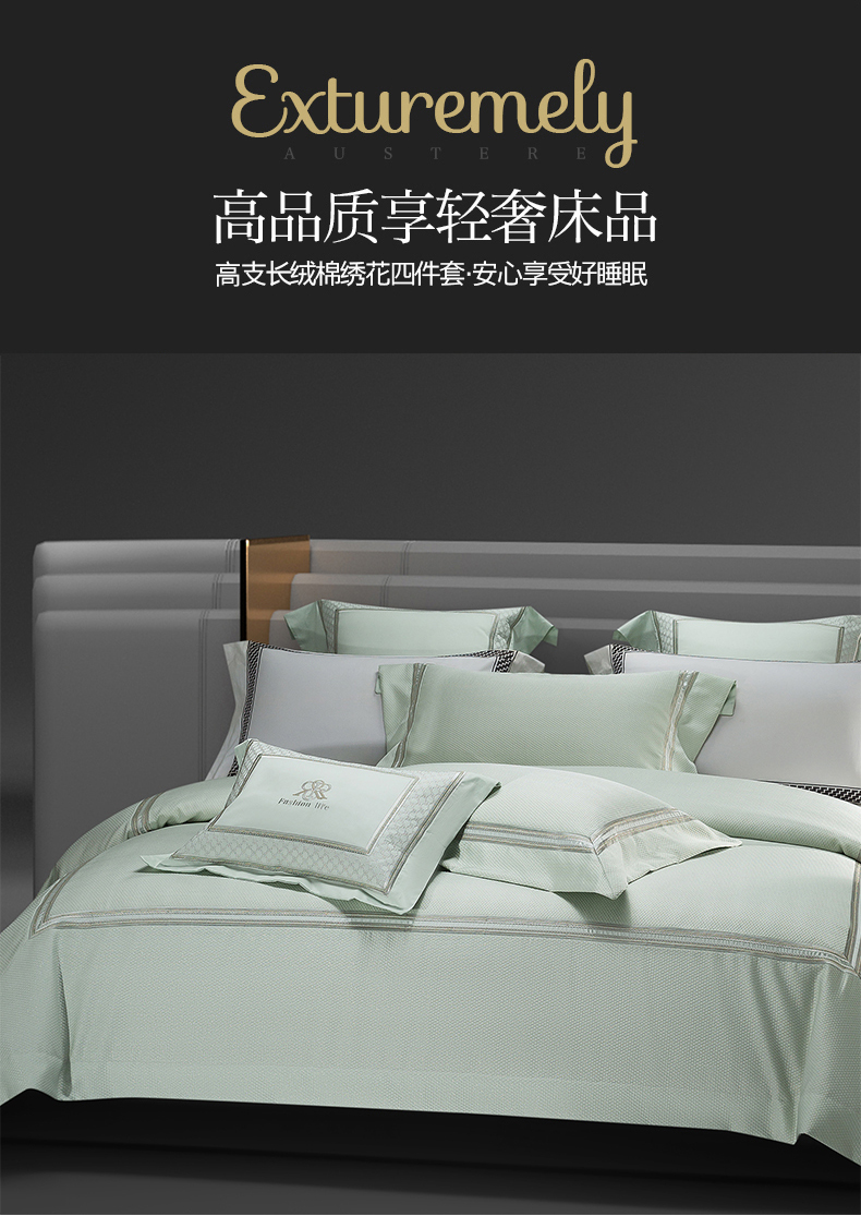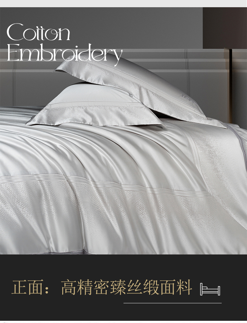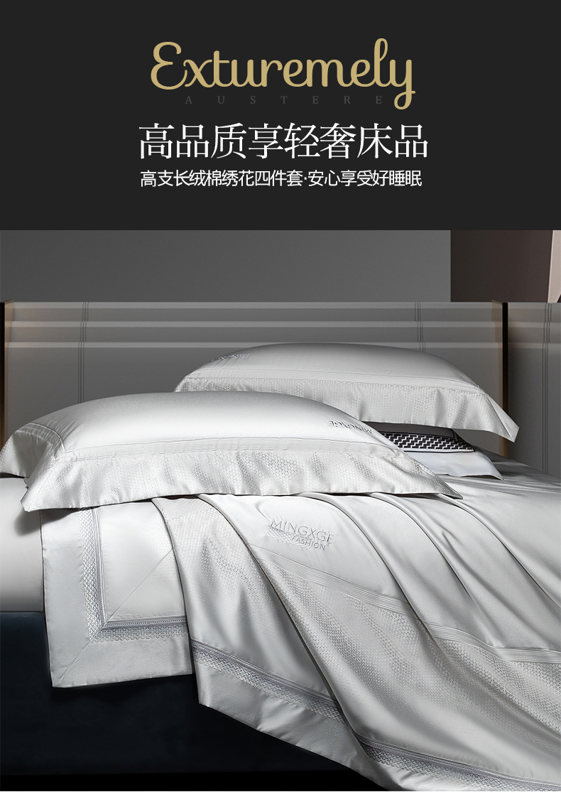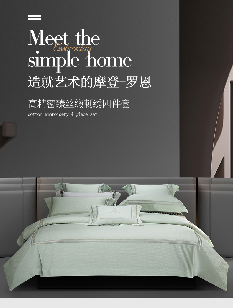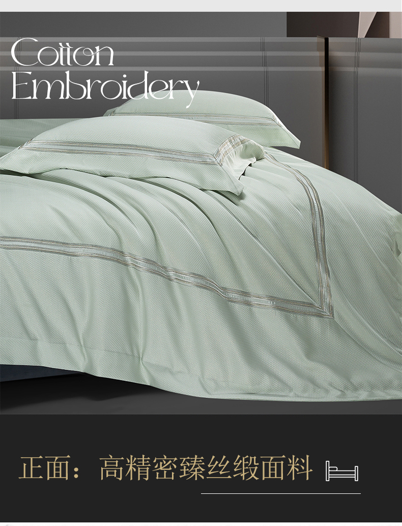 自然醒高精密臻丝缎四件套全棉纯棉刺绣简约纯色高级感被套床单四季通用床品GDS