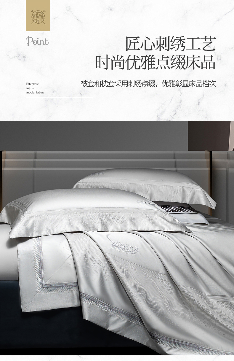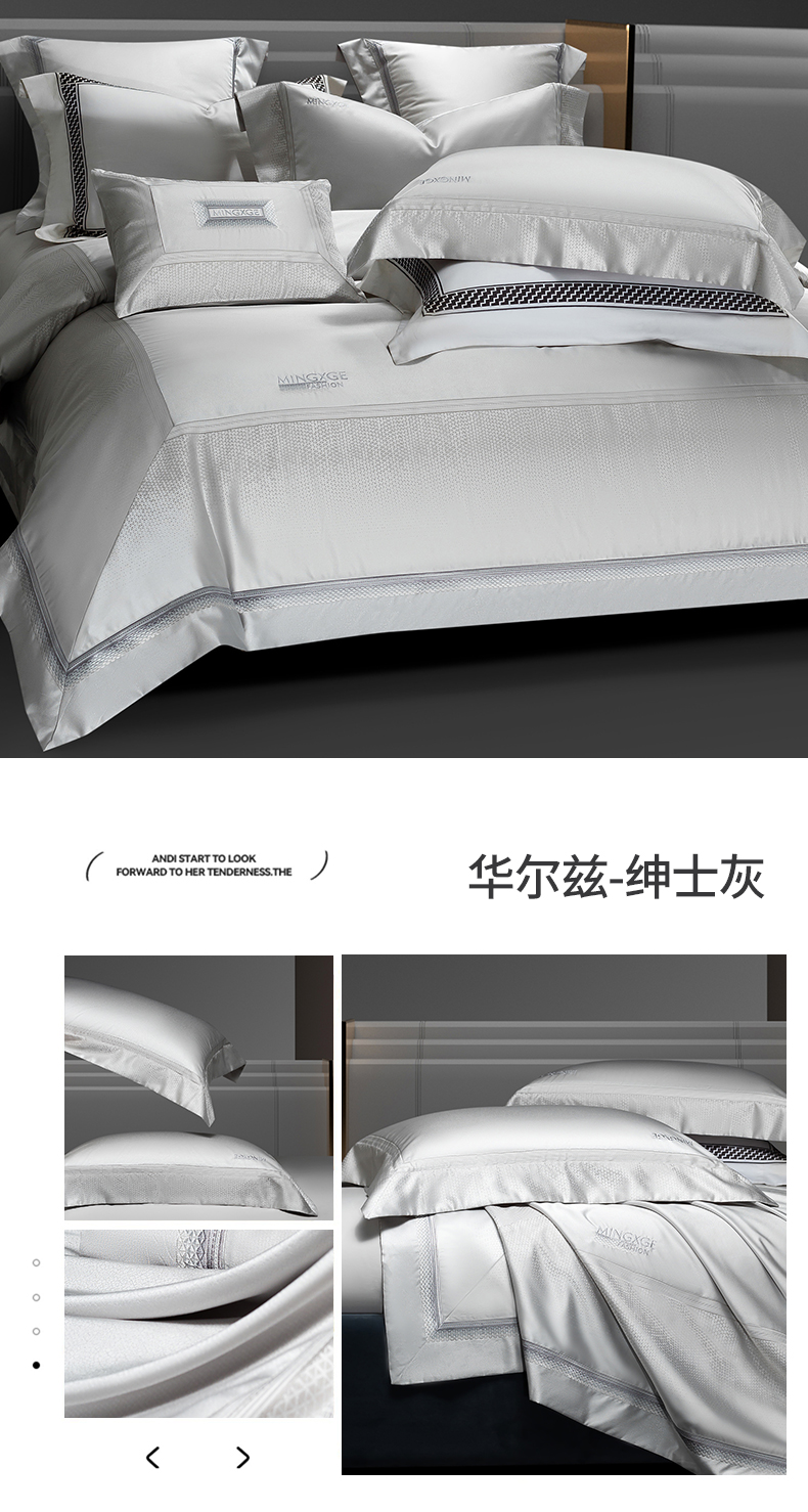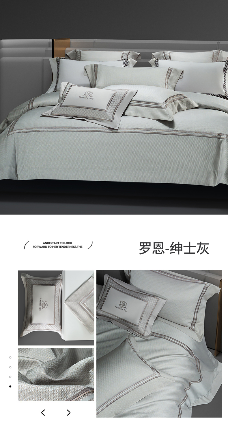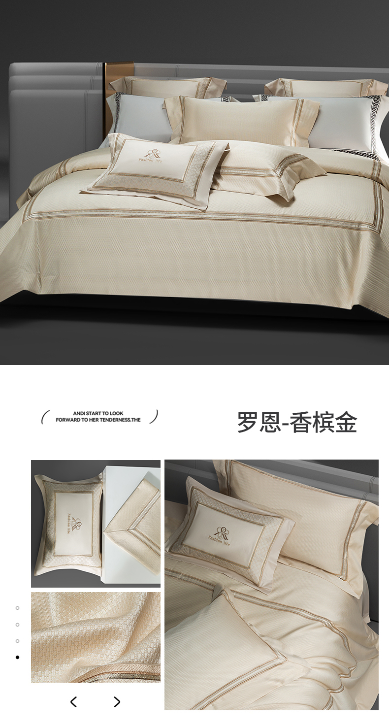 自然醒高精密臻丝缎四件套全棉纯棉刺绣简约纯色高级感被套床单四季通用床品GDS