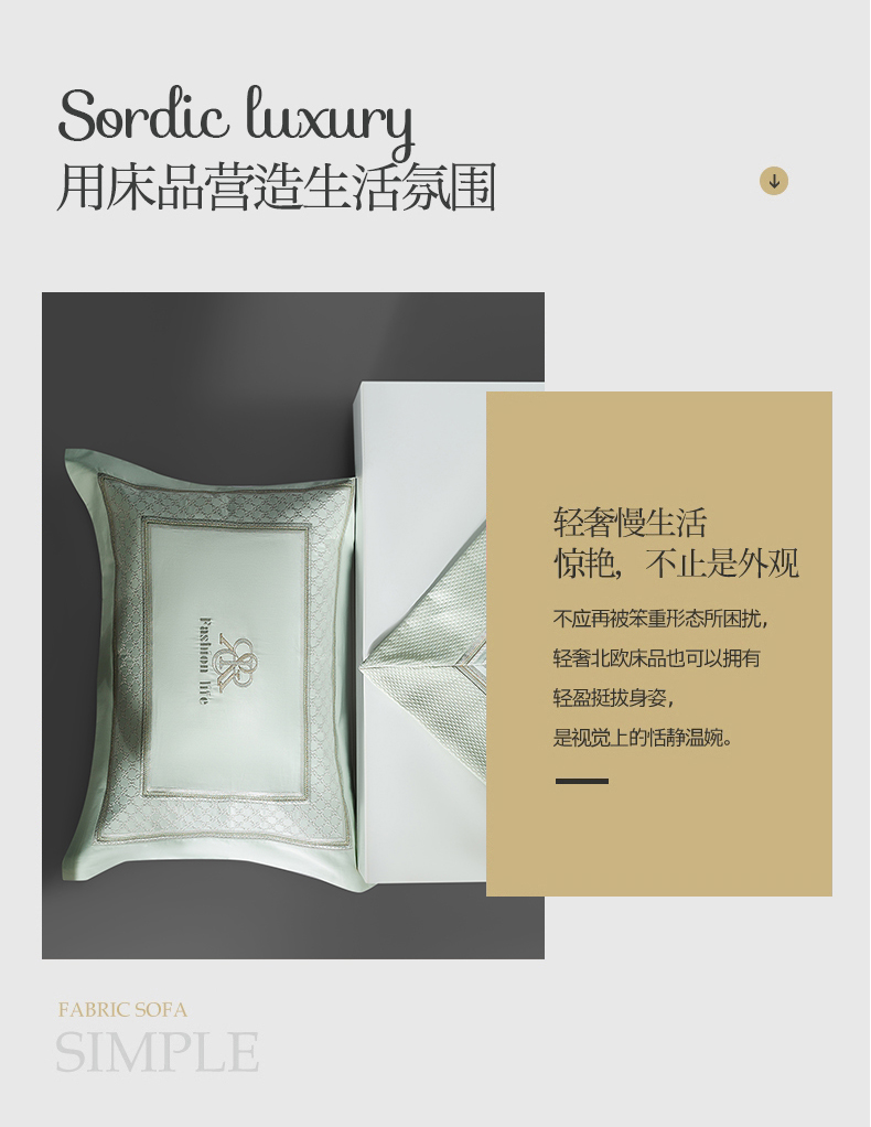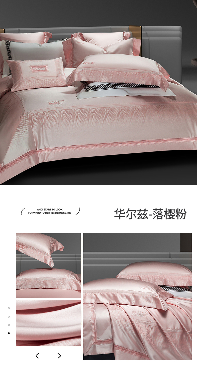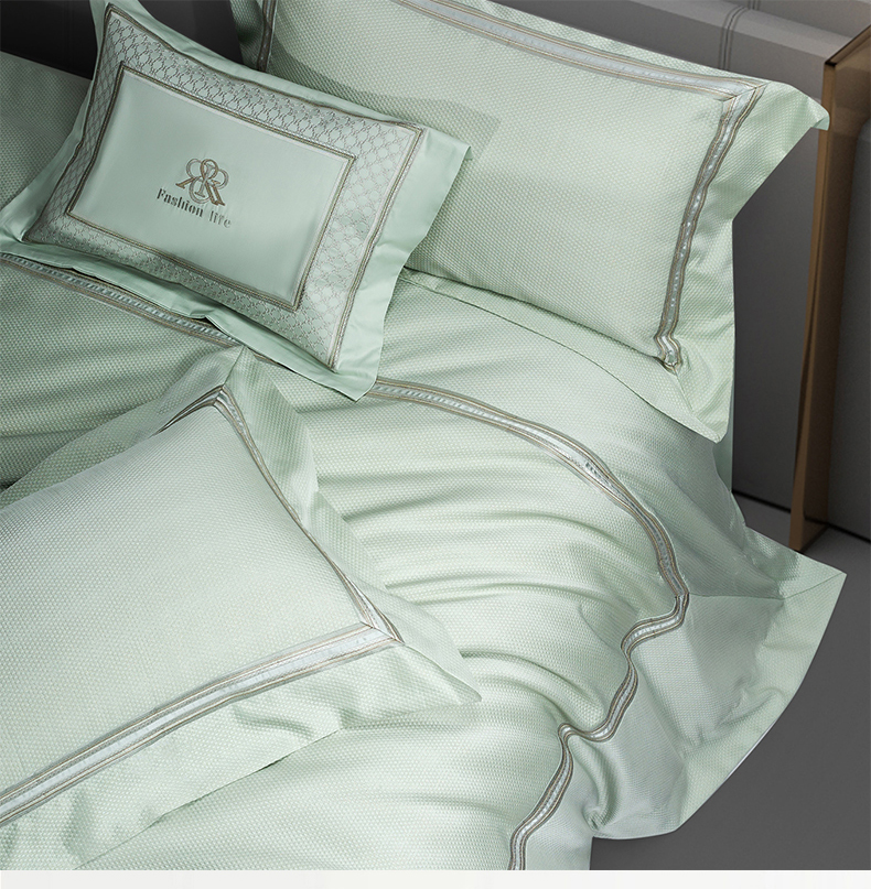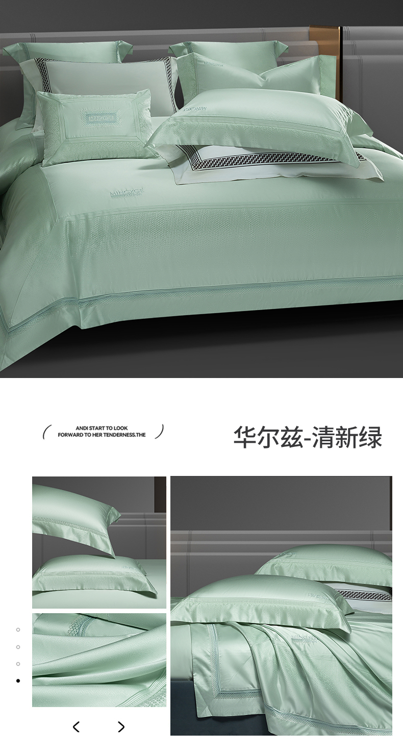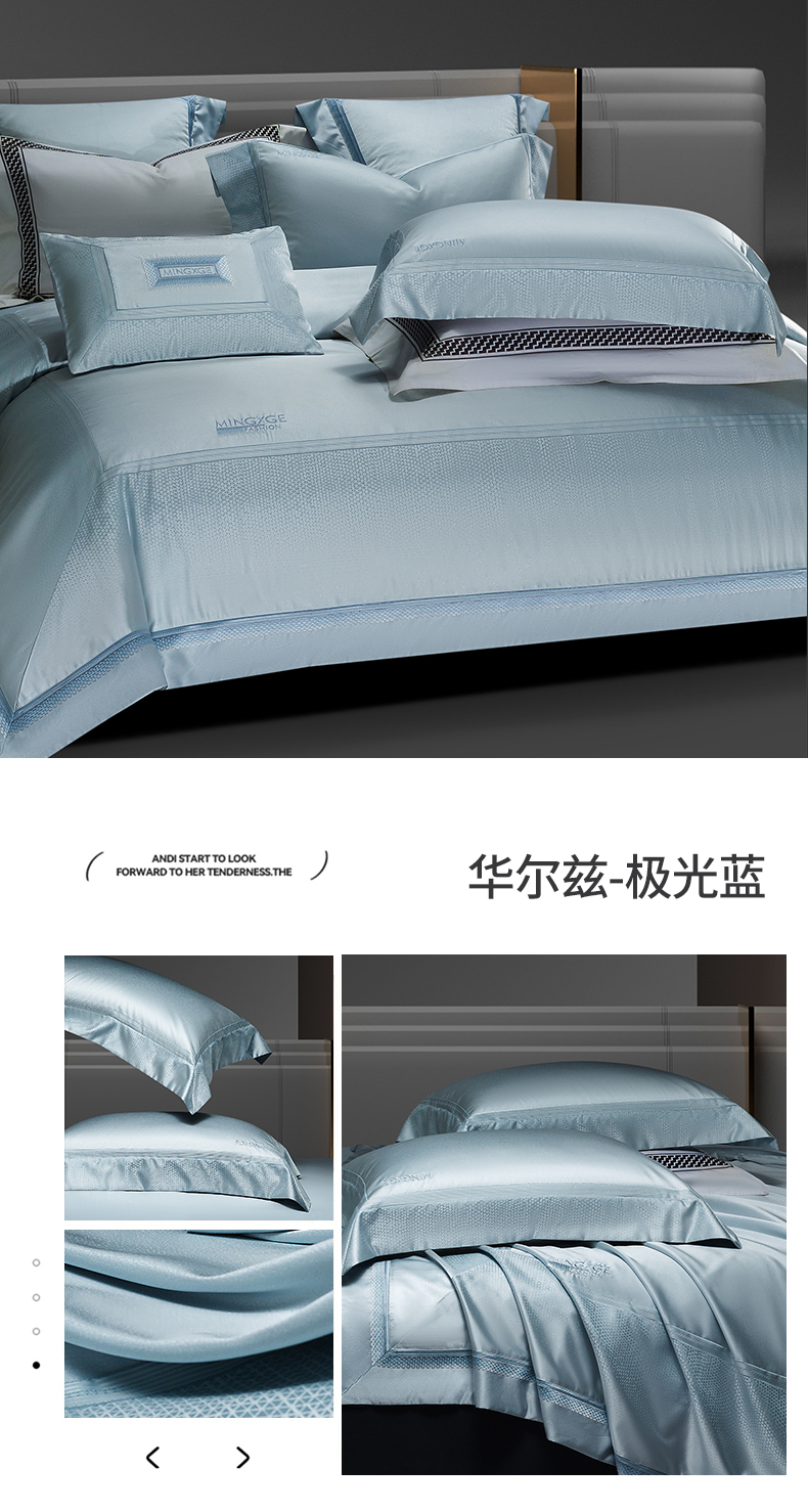 自然醒高精密臻丝缎四件套全棉纯棉刺绣简约纯色高级感被套床单四季通用床品GDS