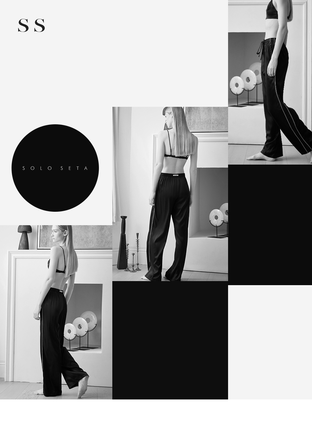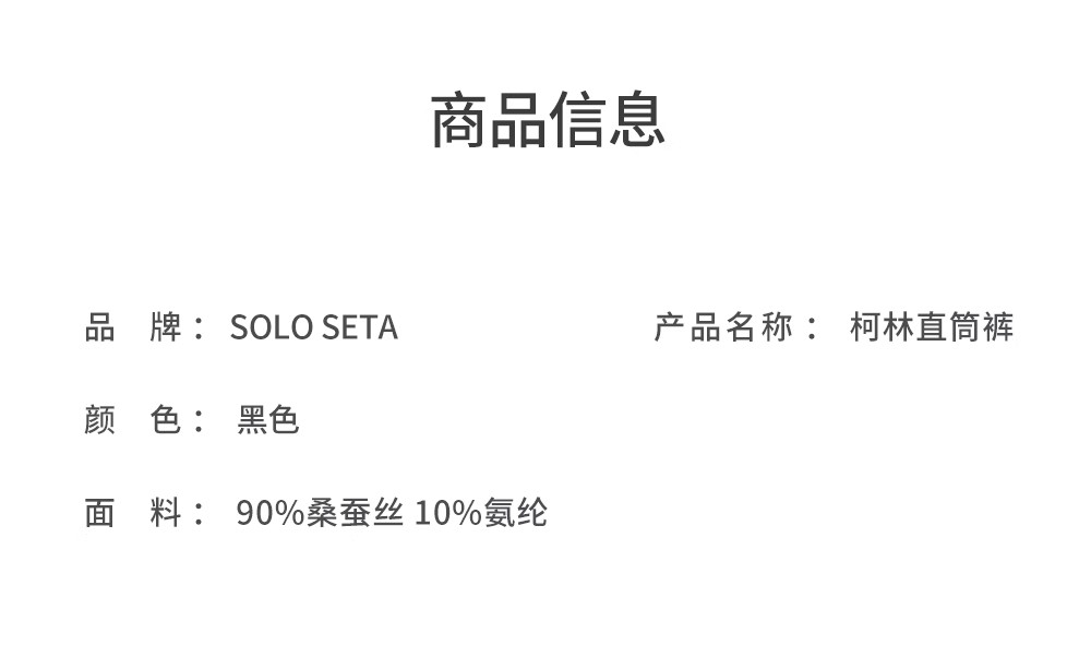 - soloseta专注于真丝织物,灵感源自意大利语,中文含义为“只做真丝”的意思。让睡衣变时尚,居家和外出瞬间切换,使其更具有出街,度假,参加宴会等功能。