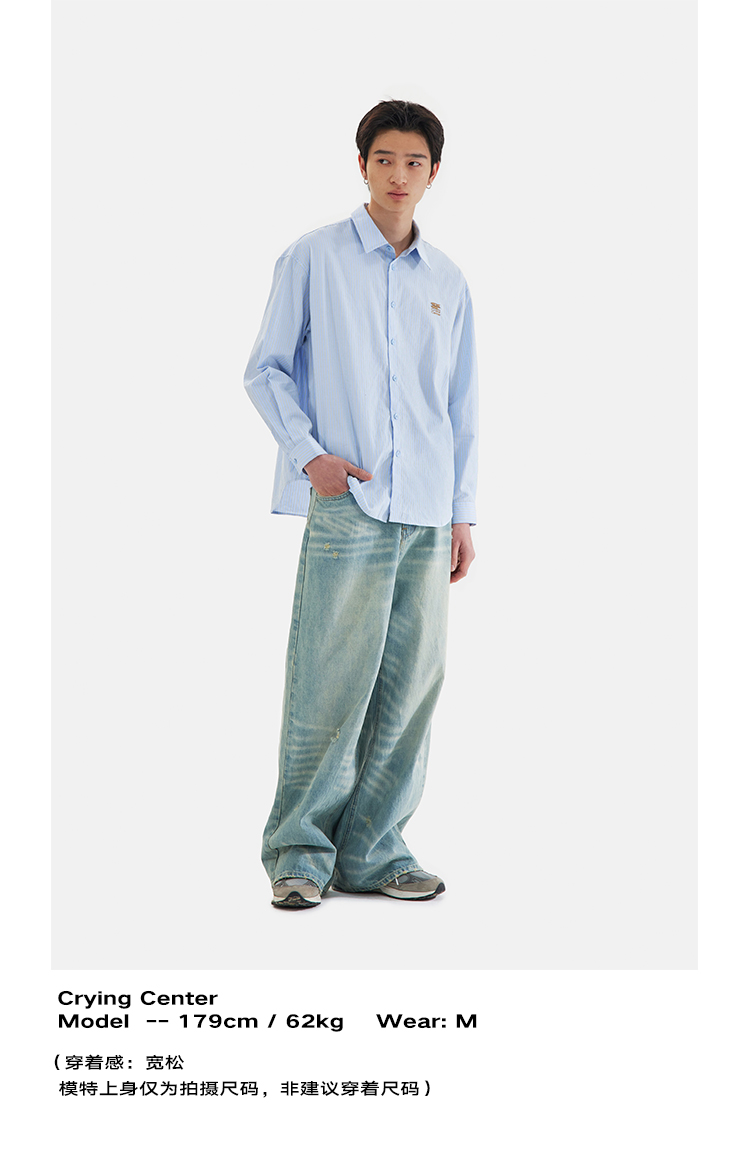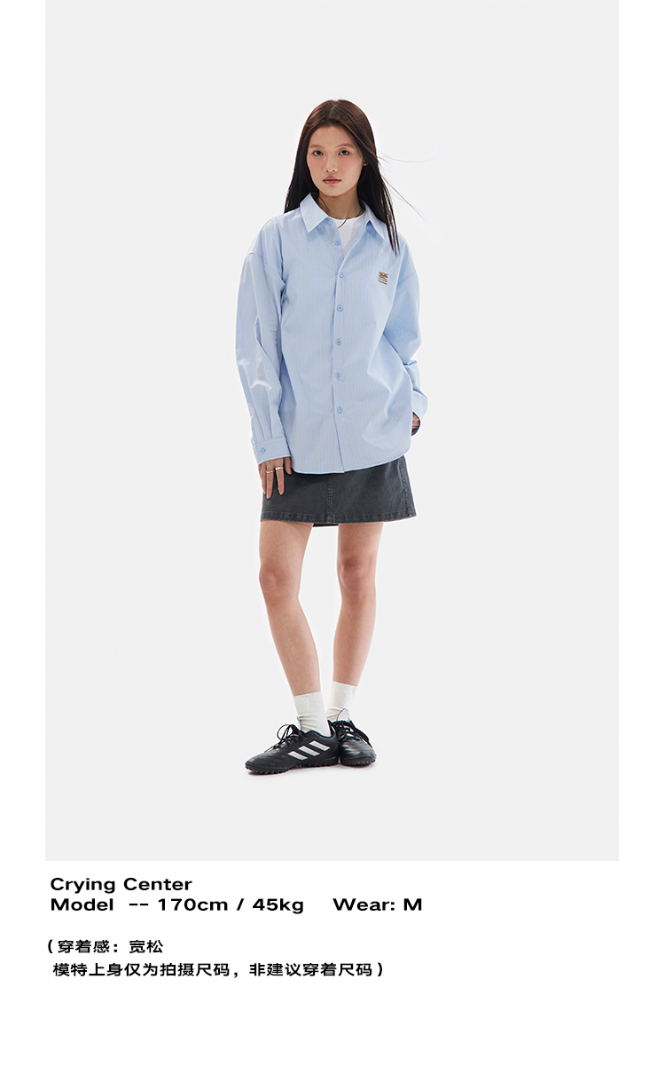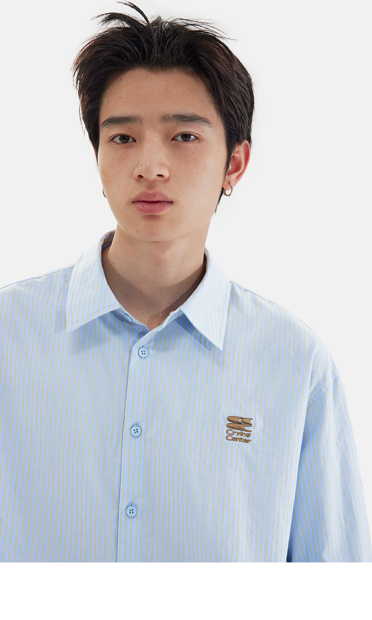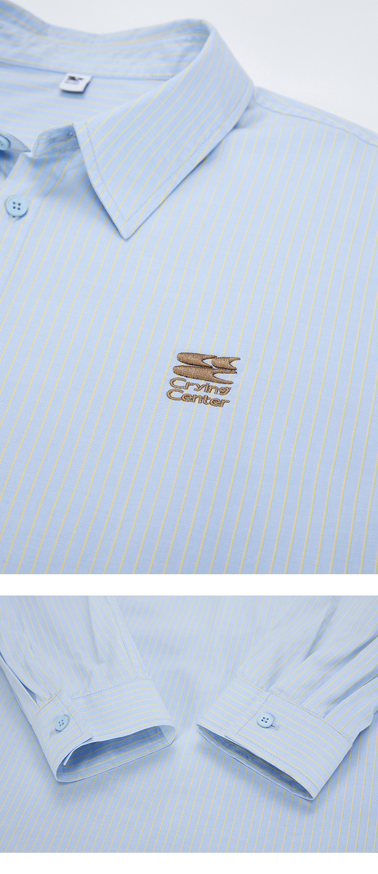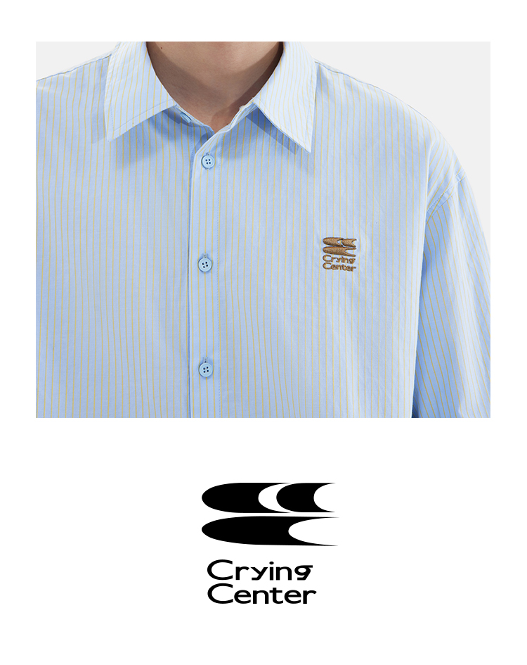 CryingCenter 柠檬海盐蓝条纹日系春夏宽松棉衬衫 哭喊中心
