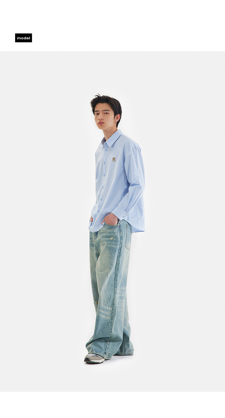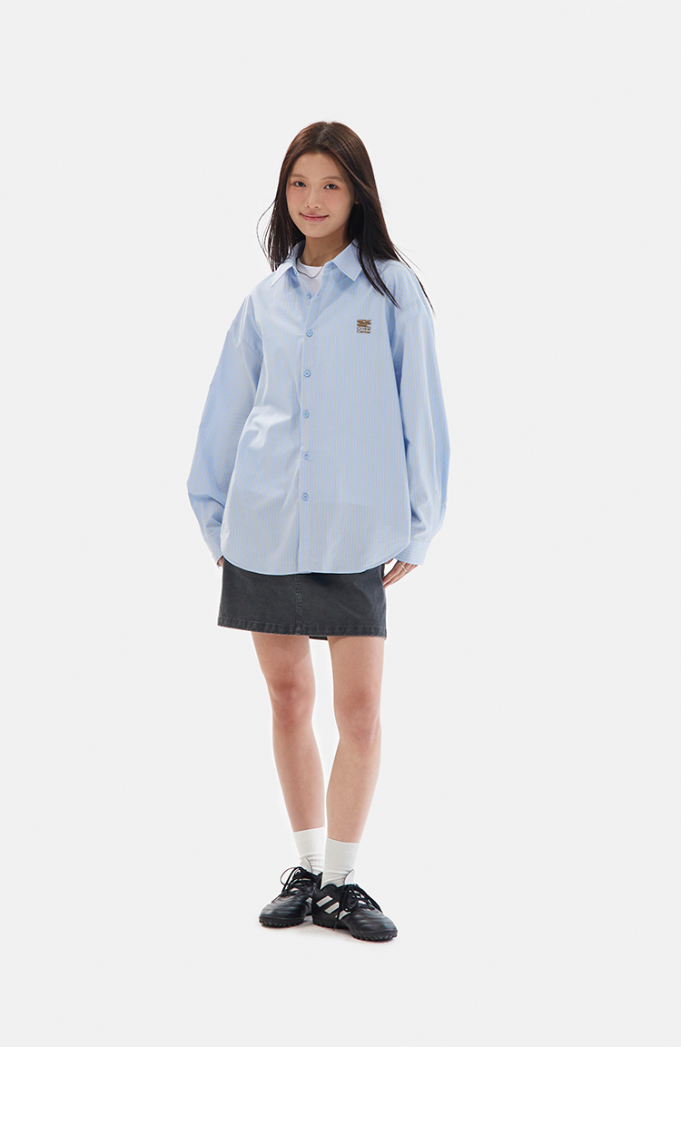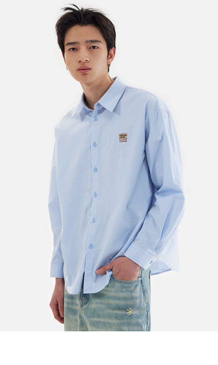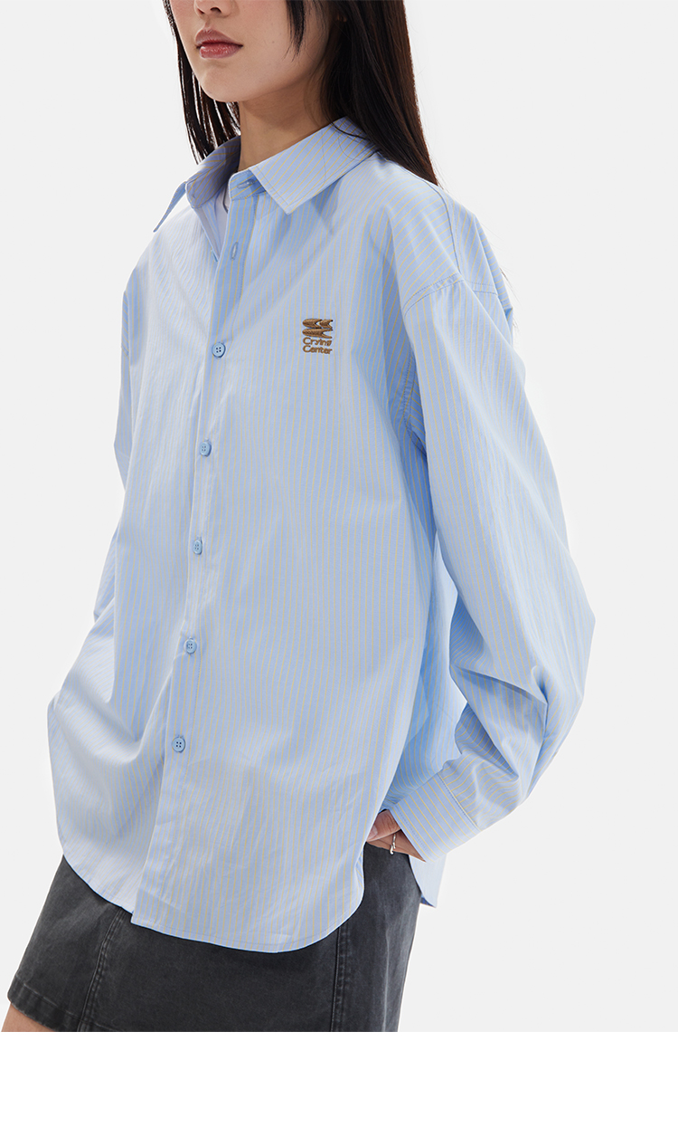 CryingCenter 柠檬海盐蓝条纹日系春夏宽松棉衬衫 哭喊中心
