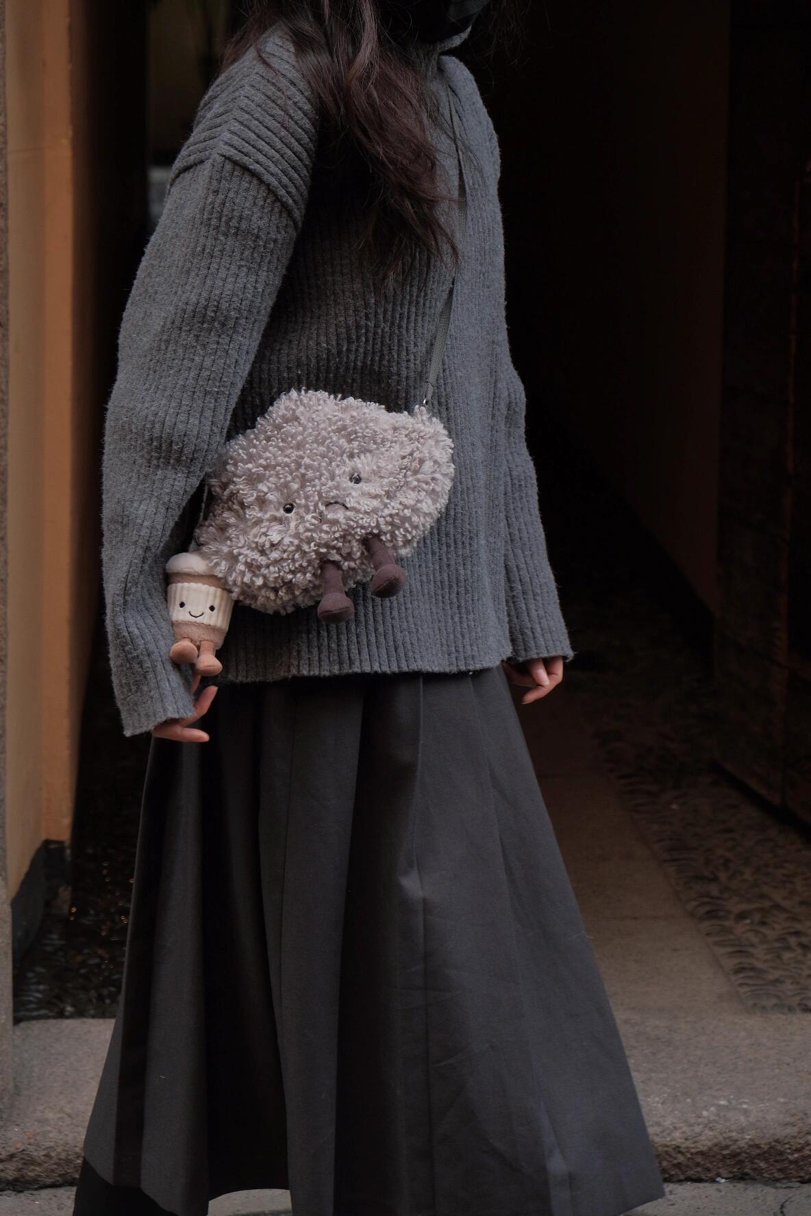 脚踩棕色雨靴,空气感+蓬松感+丝滑感的手感,这只好有特点!