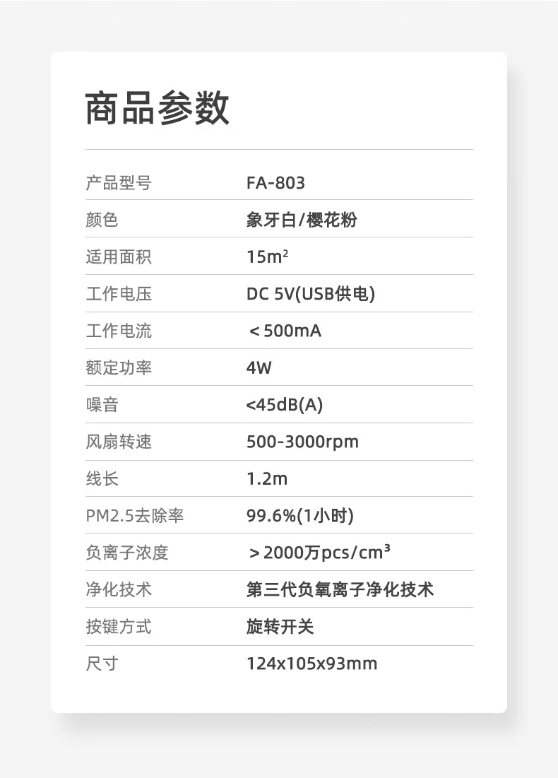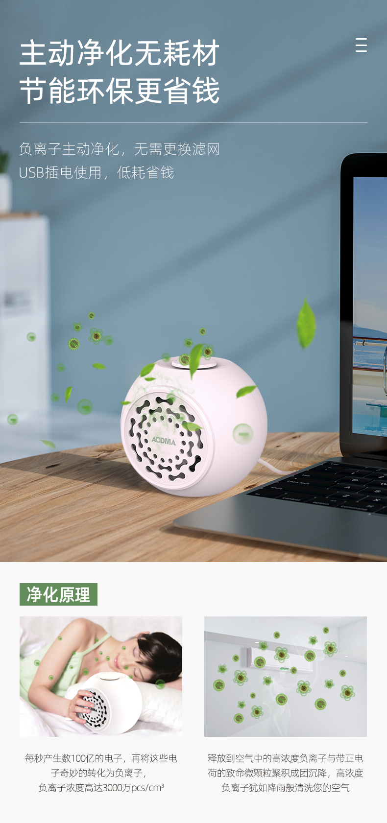 澳得迈(AODMA)车载空气净化器 FA-803 粉红色